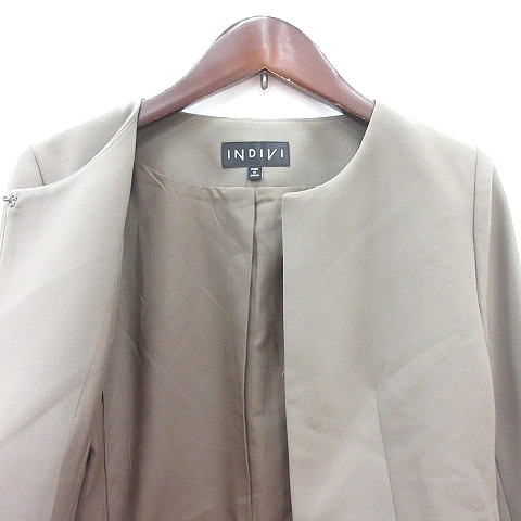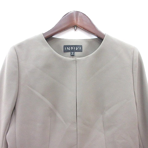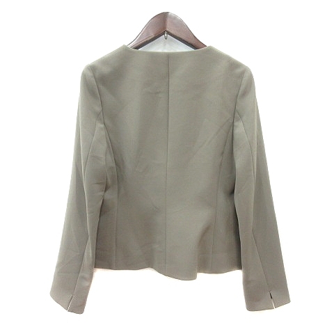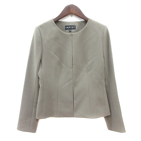 インディヴィ INDIVI ノーカラージャケット 総裏地 36 S 緑 カーキ /MN レディース