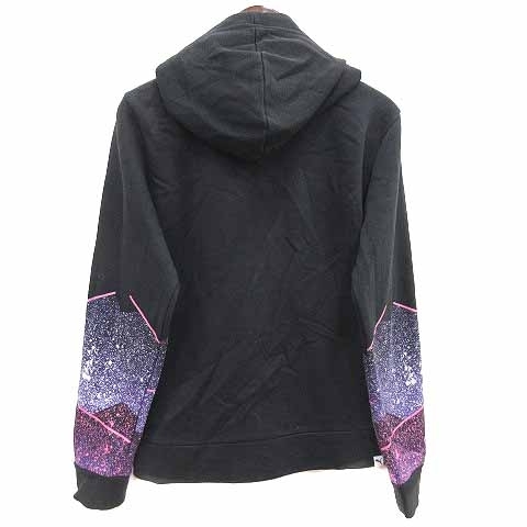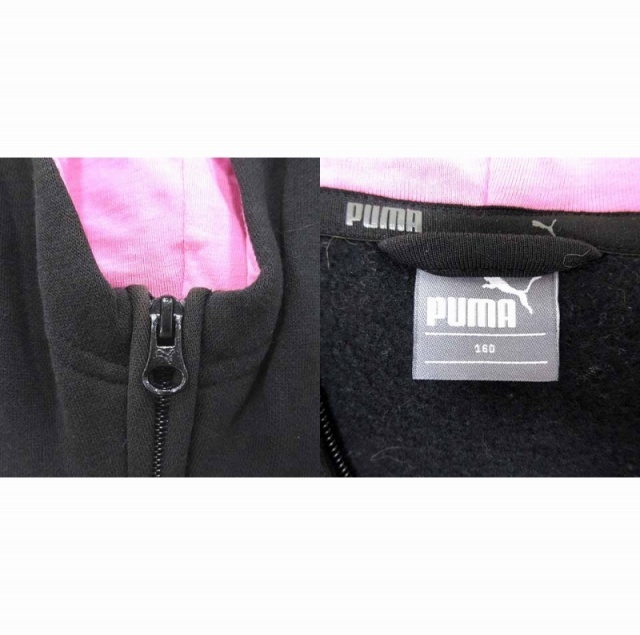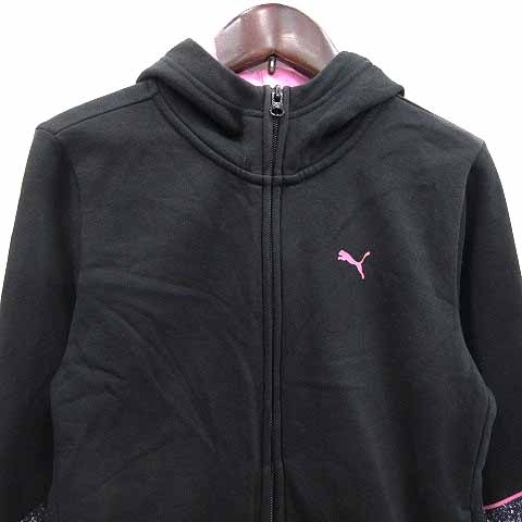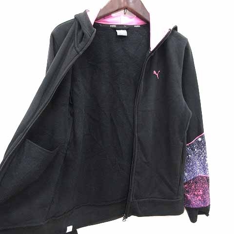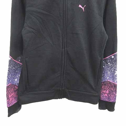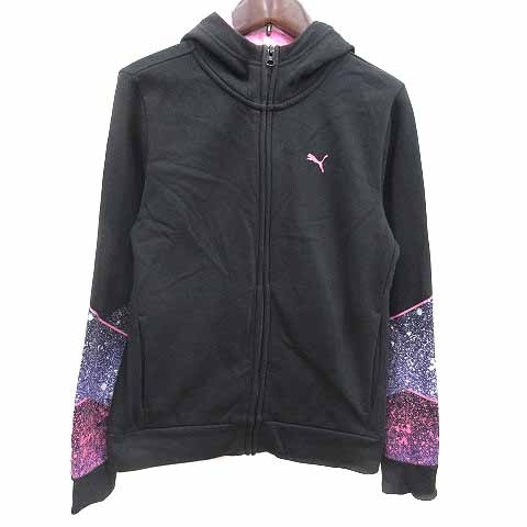 プーマ PUMA スポーツウェア パーカー ジップアップ 裏起毛 総柄 160 黒 ブラック 紫 パープル /YK キッズ