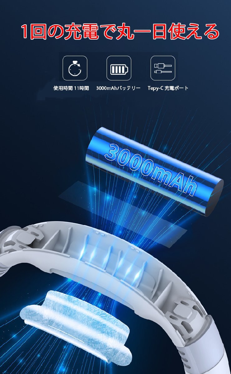 首掛け扇風機には、最新の涼感プレートが搭載されており、首周りを効果的に冷却し、涼しい風を体感することができます。