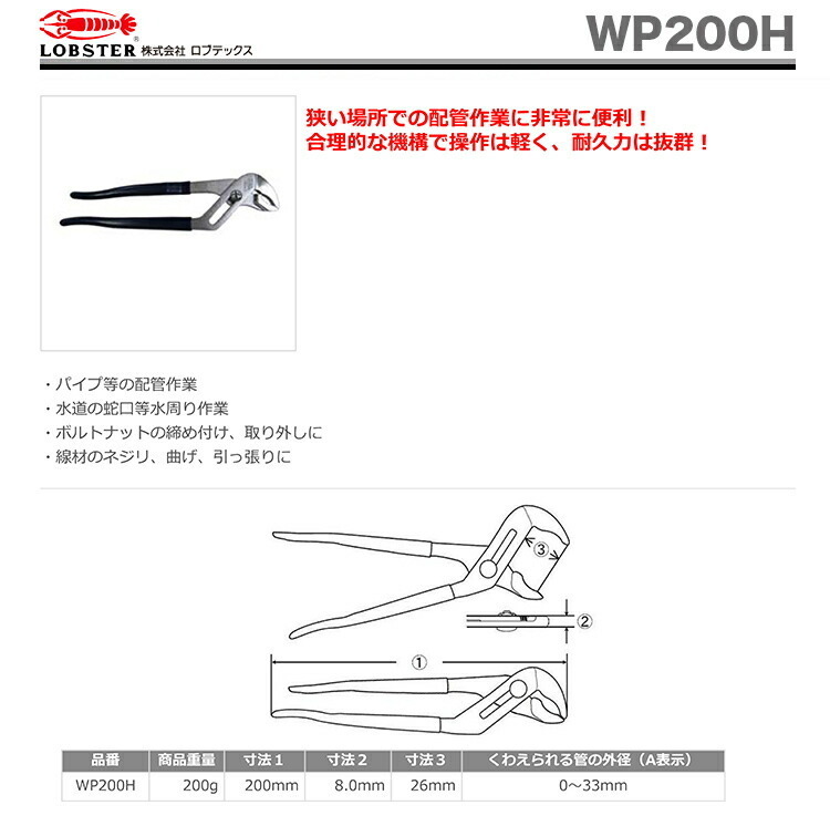 LOBSTER(エビ印) ポンププライヤ WP200H