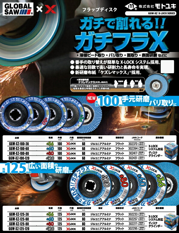 モトユキ/GLOBAL SAW フラップディスク ガチフラX(10枚入) GGW-XZ-125-60