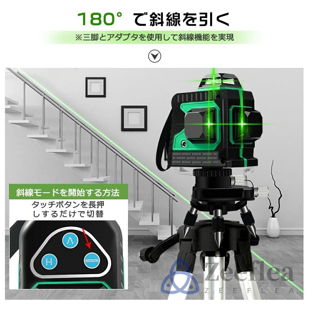 レーザー墨出し器 レーザーレベル 12ライン 360度 レーザー墨出し機 自動補正機能 グリーンレーザー 小型軽量 30m作業範囲