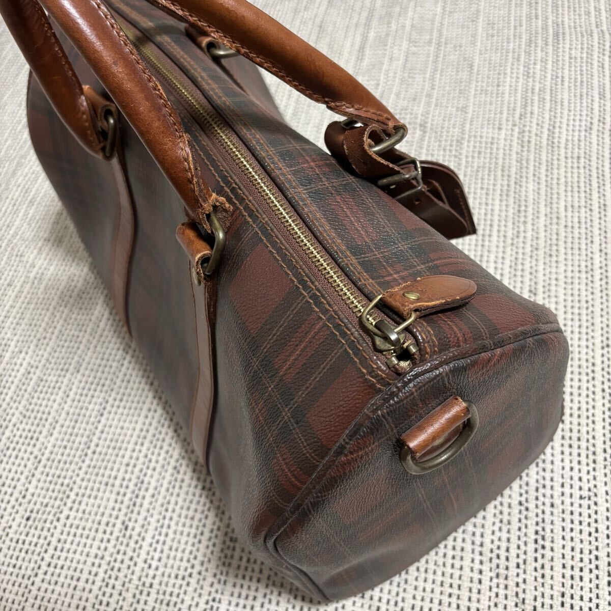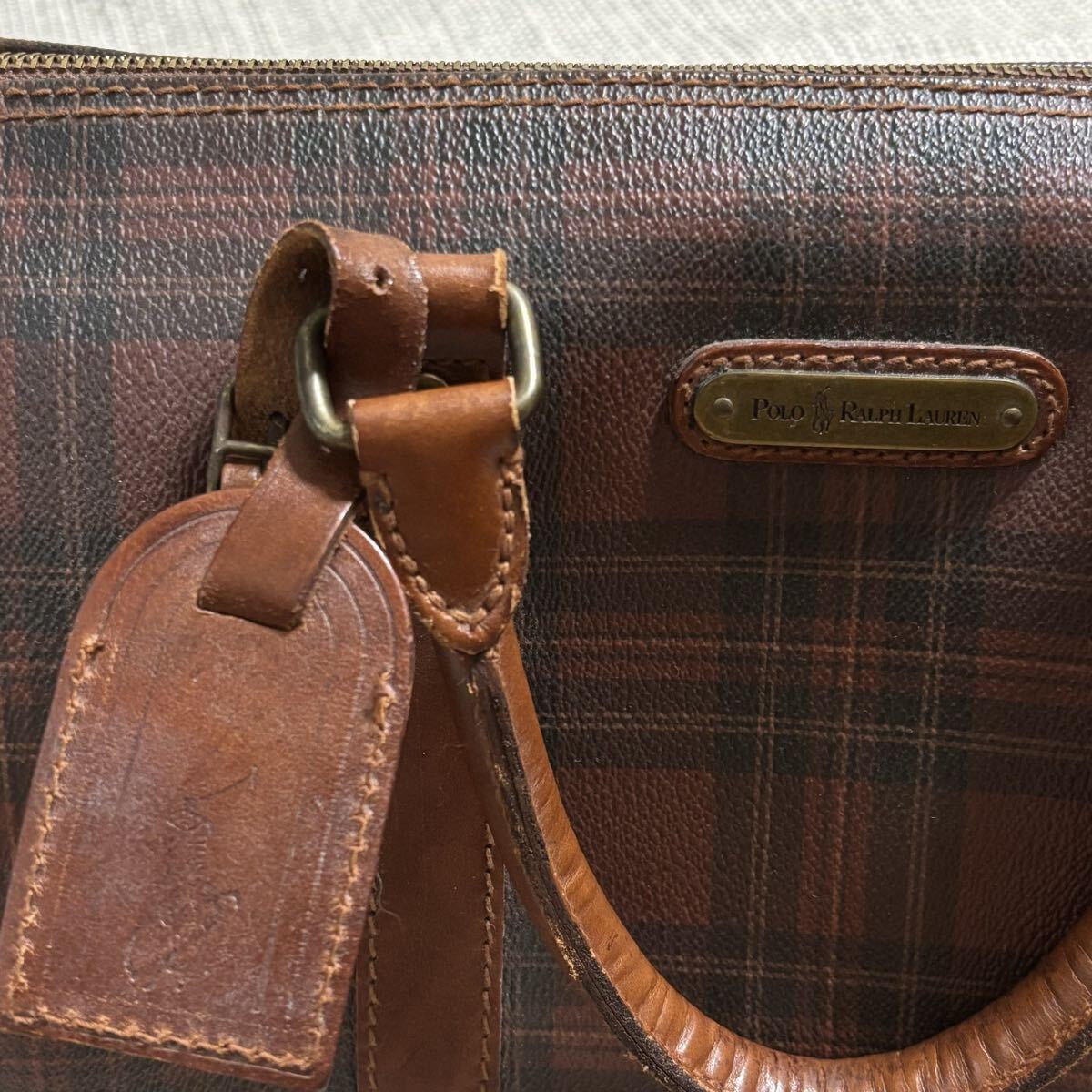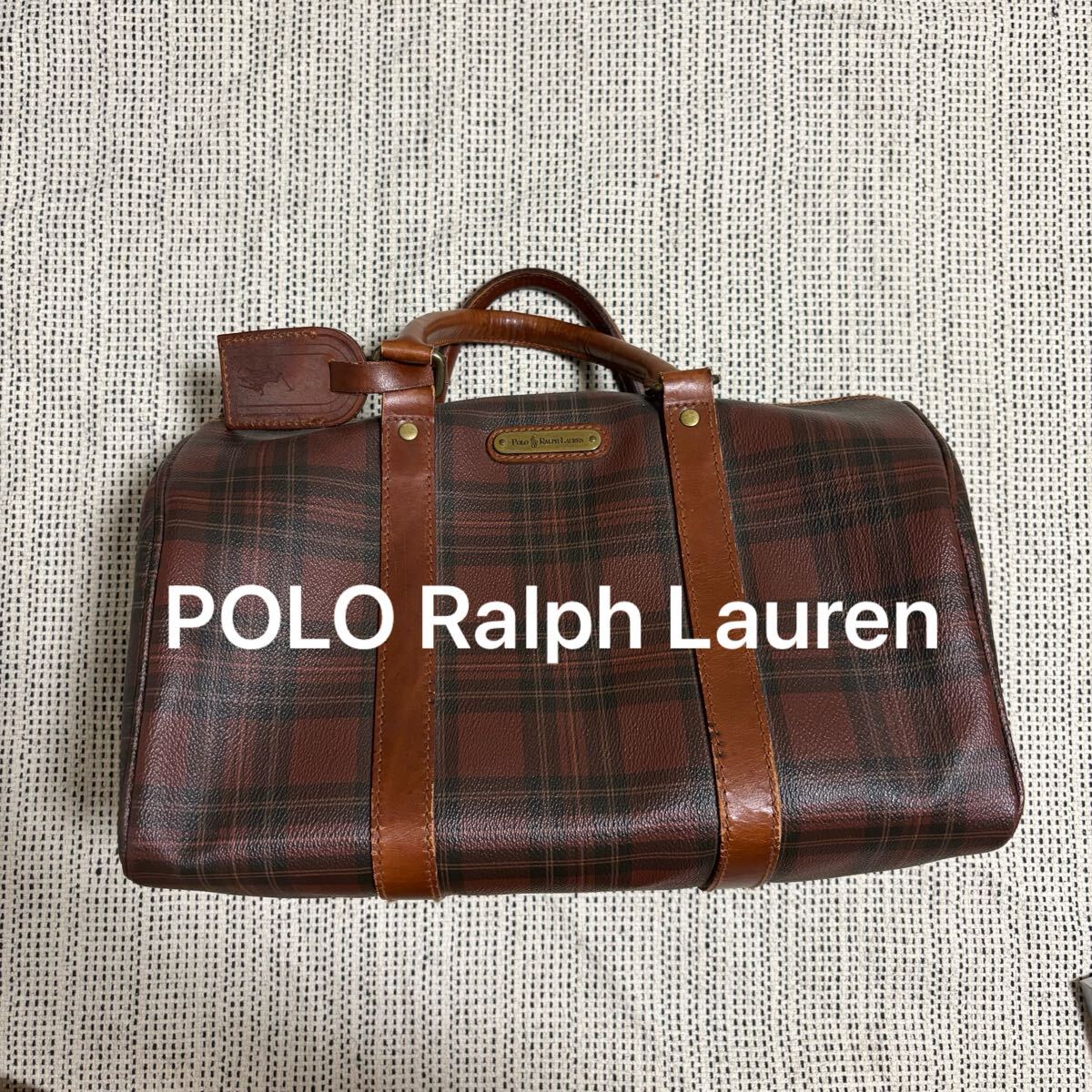 希少カラー レア POLO Ralph Lauren チェック柄 ボストンバッグ ハンドバッグ ラルフローレン レザー PVC