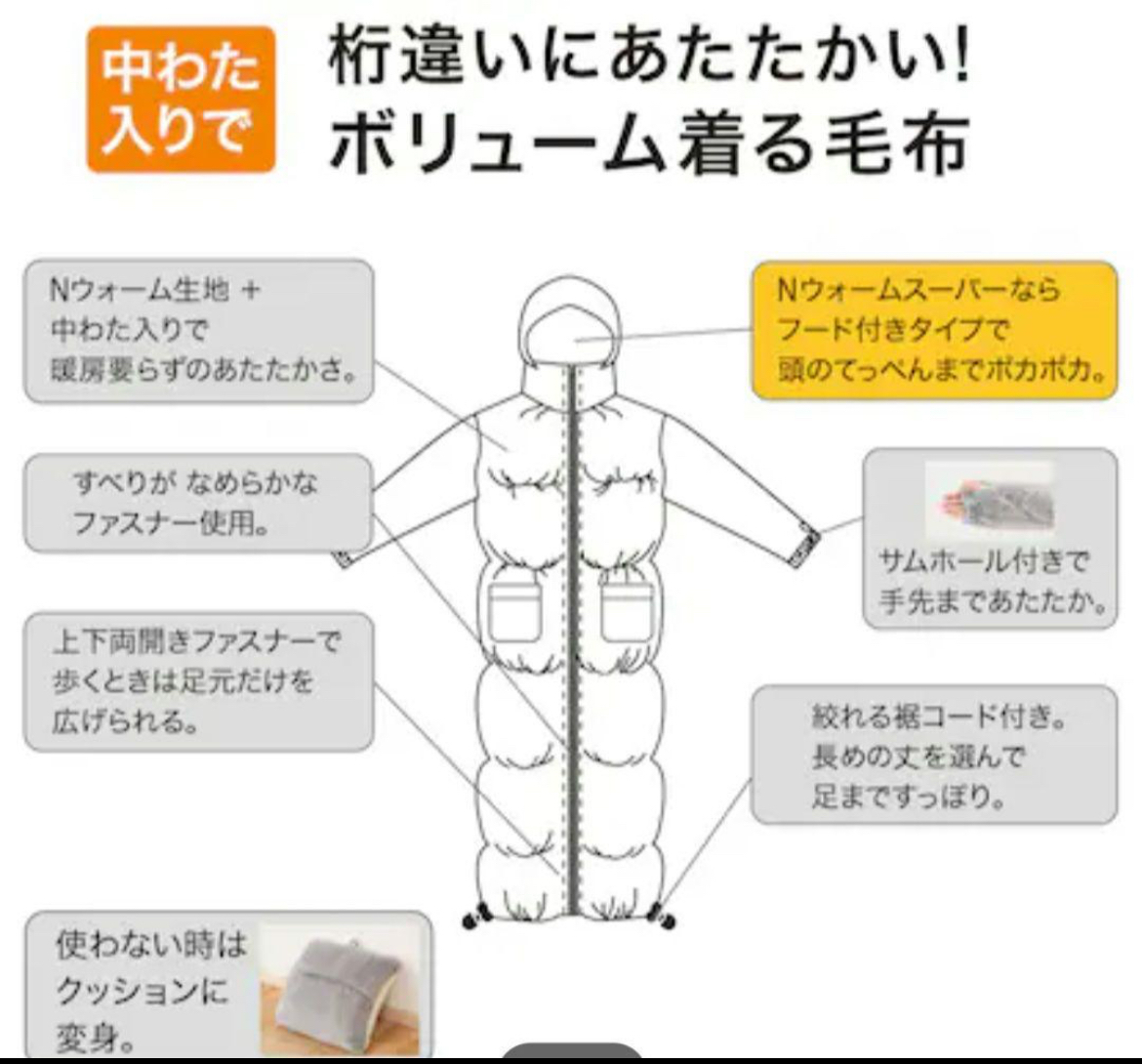 ニトリ フード付き中綿入り着る毛布 ロング丈 (Nウォーム)M
