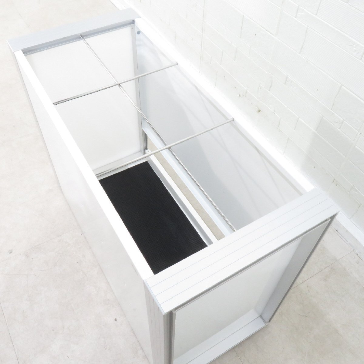 | 材 質 | 本体/フレーム:アルミ押出材(アルマイト仕上げ)、サイドパネル:PP樹脂ボード、仕切り:ステンレス丸棒 |