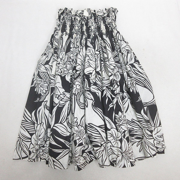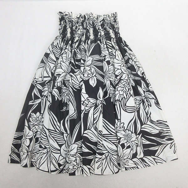 G■フラダンス用■ ハイビスカス柄 ハンドメイド パウスカート フリーサイズ ハワイアン/白黒/LADIES■77【中古】