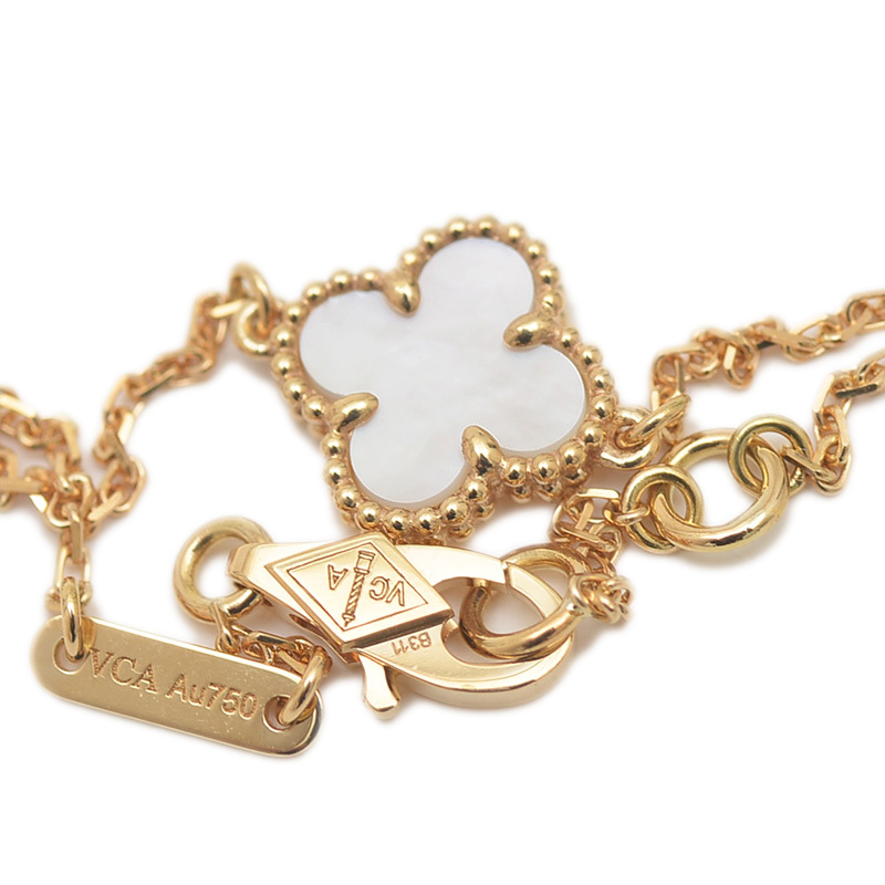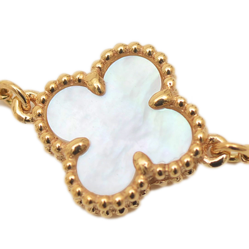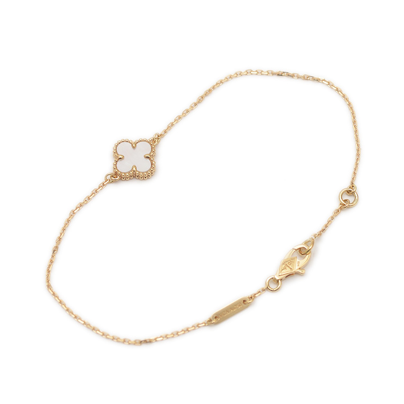| 商品特徴 | ブランドを象徴するクローバーモチーフが、愛らしいミニチュアサイズでデザインされたブレスレットです。温かみのある18Kイエローゴールドと、神秘的な輝きを放つマザーオブパールの組み合わせが、手首に上品で可憐な華やかさを添えます。日常の装いにさりげないエレガンスをプラスする、タイムレスな魅力を持つ人気の逸品です。 |