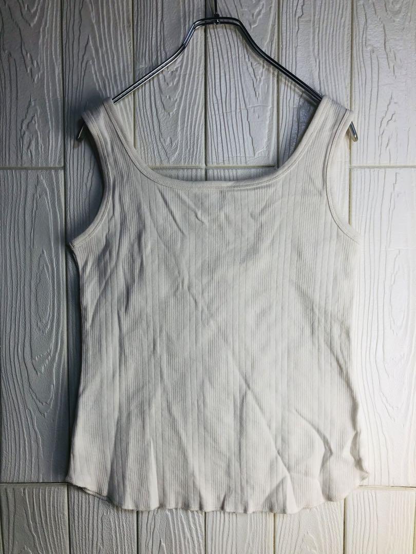 クリーム色のノースリーブトップス、シンプルで使いやすいデザイン。