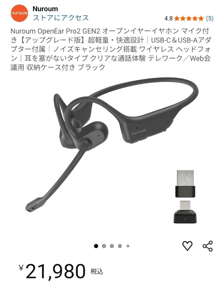 Nuroum OpenEar Pro2 GEN2 オープンイヤーイヤホン マイク付き アップグレード版です☆
