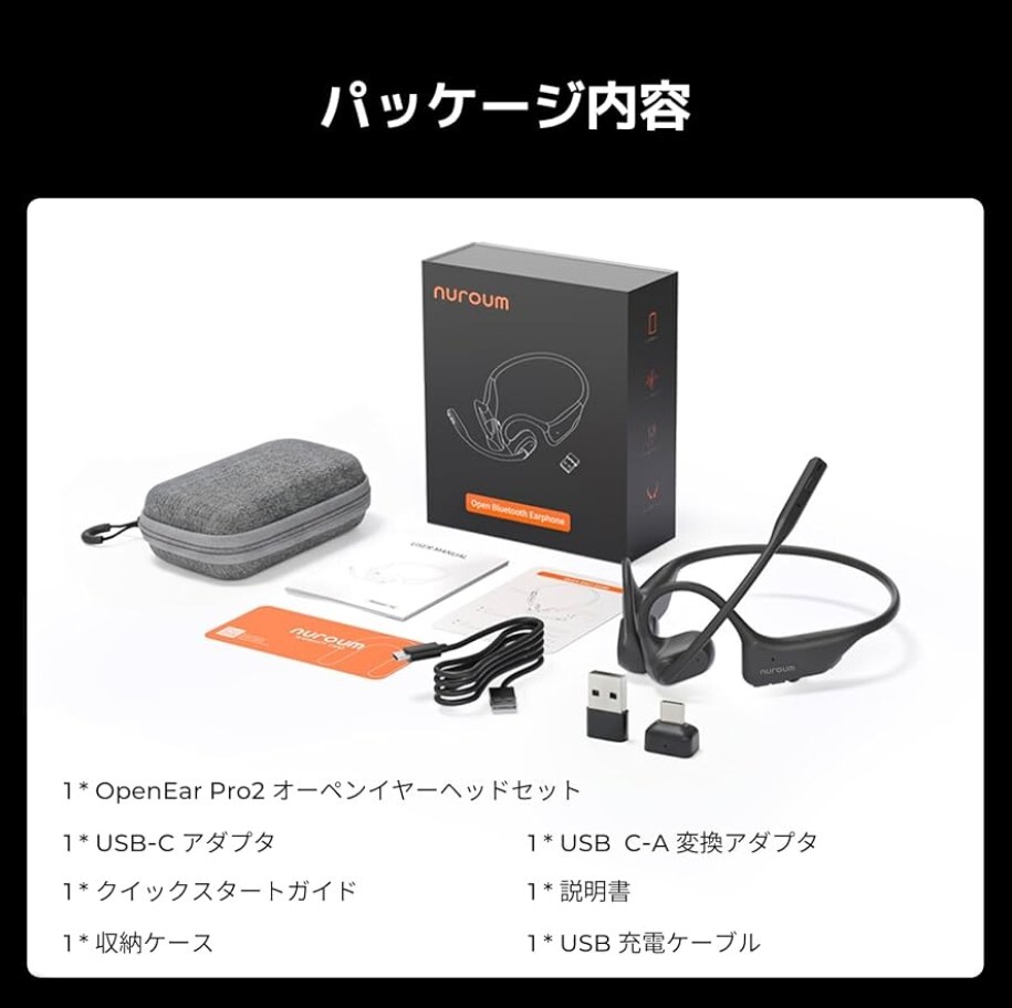 OpenEar Pro2,取扱説明書, USBケーブル, USBアダプター,収納ケース