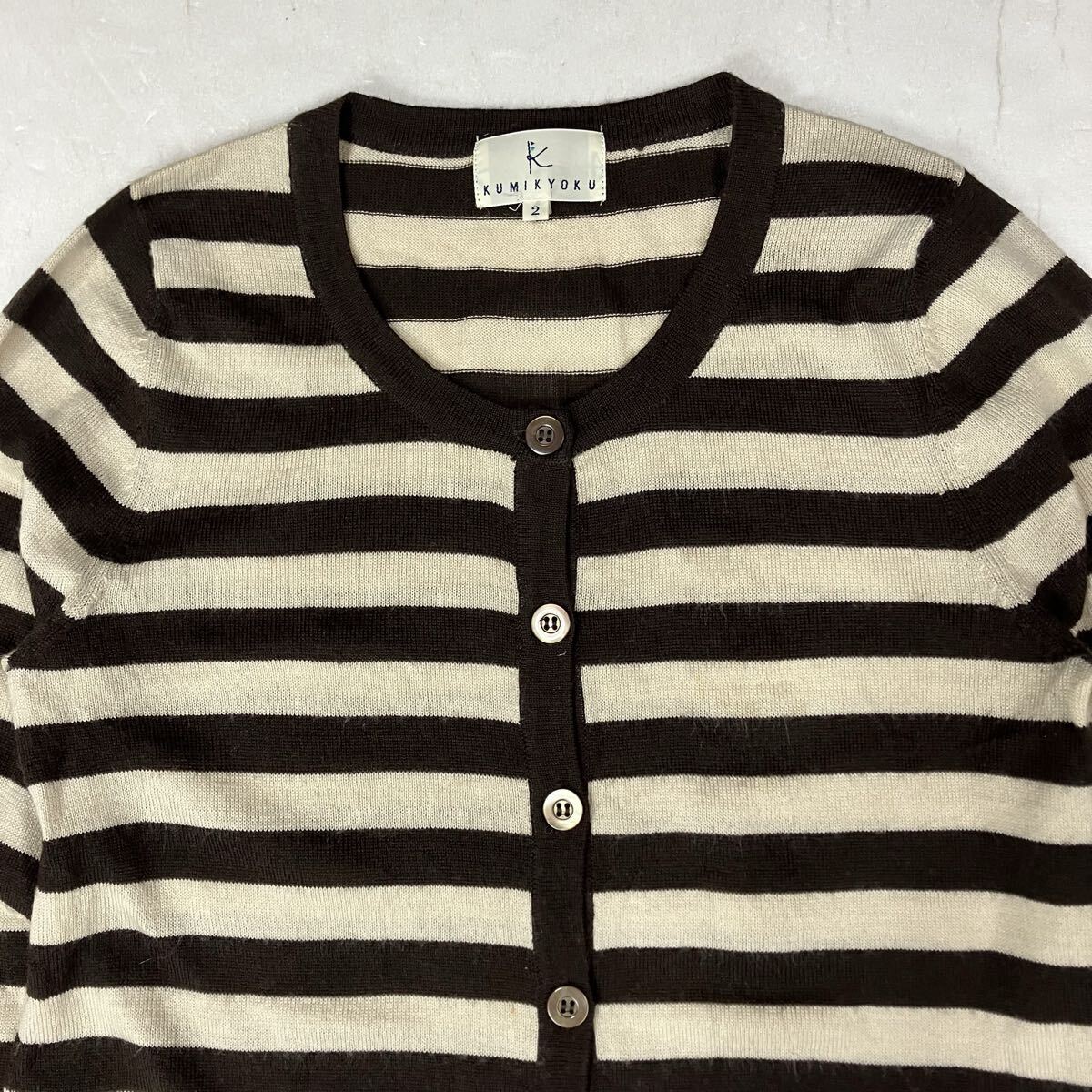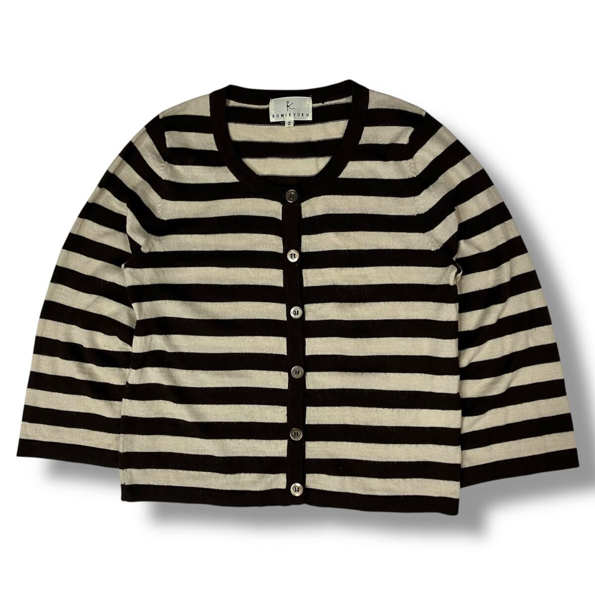 (TS1025) KUMIKYOKU クミキョク オンワード樫山 ボーダー ニット カーディガン ブラウン×アイボリー size:2