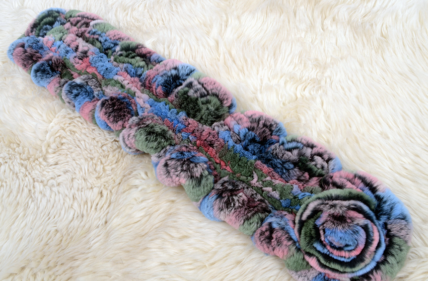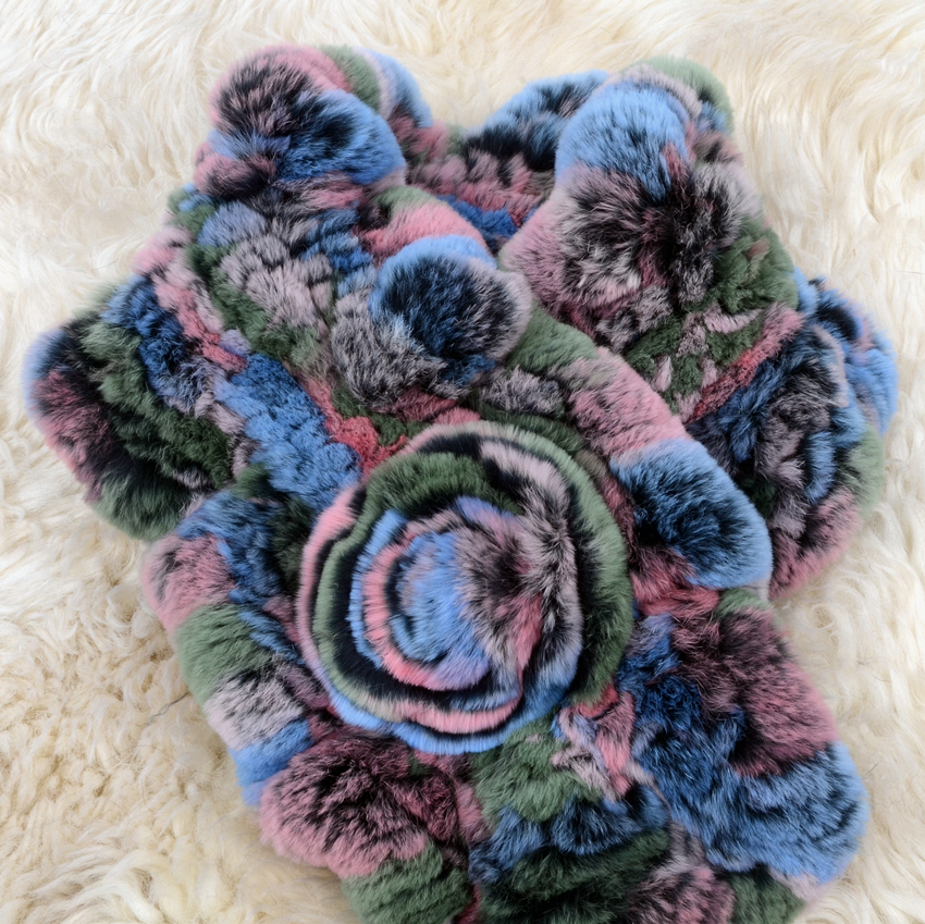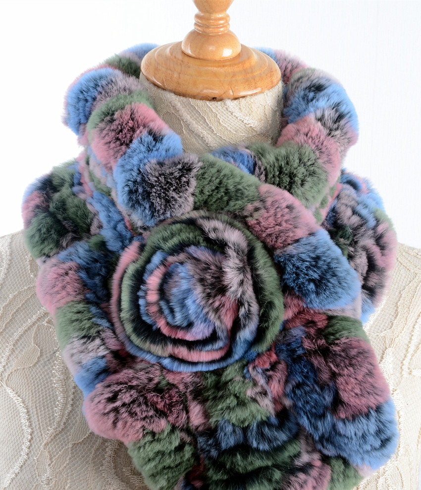 | 新品◆お花デザイン★上品なレッキスの編込み マフラー/毛皮 リアルファー |