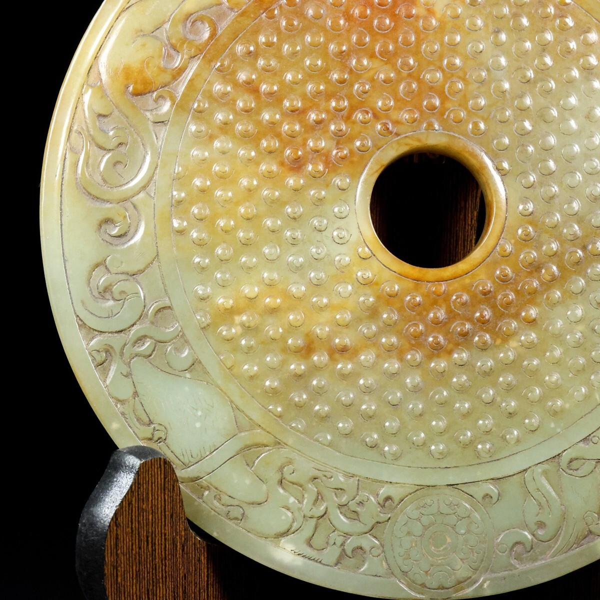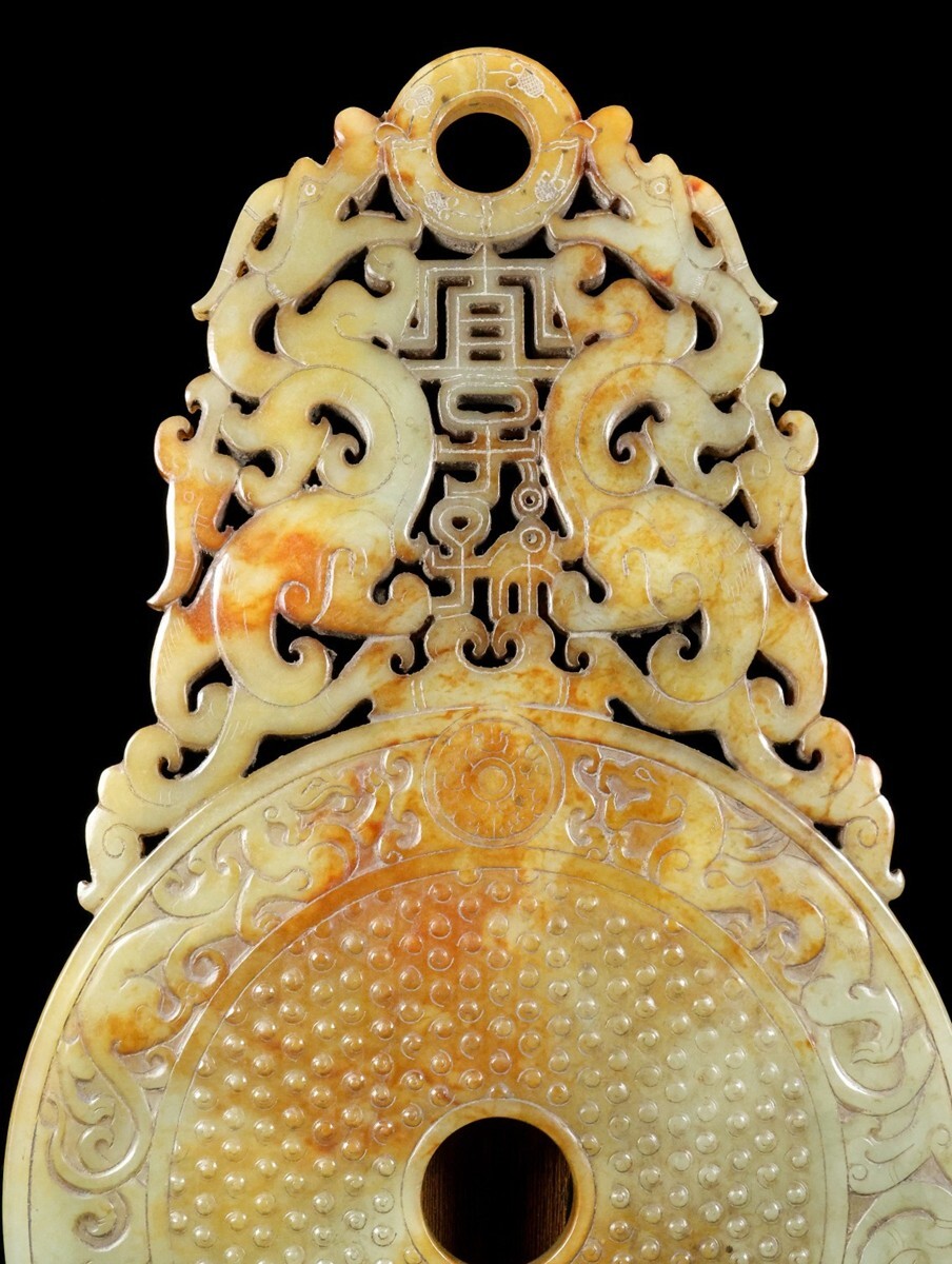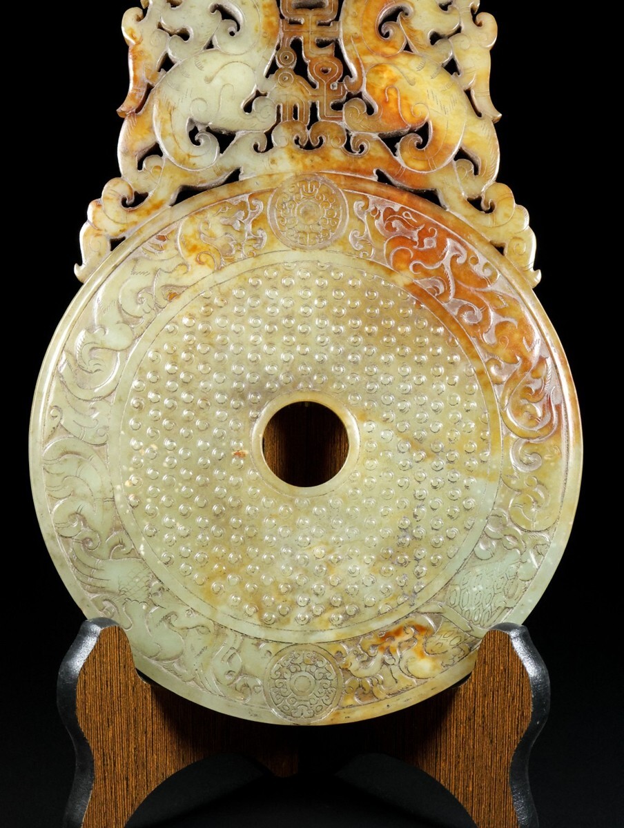 「時代物 和田玉 高古玉彫り 宜子孫 靠山璧」極細工 擺件 中国古賞物 古美術 旧蔵出