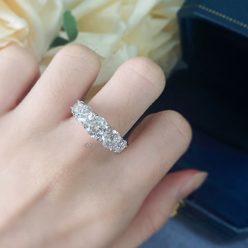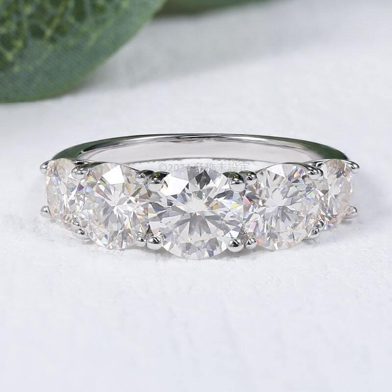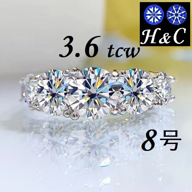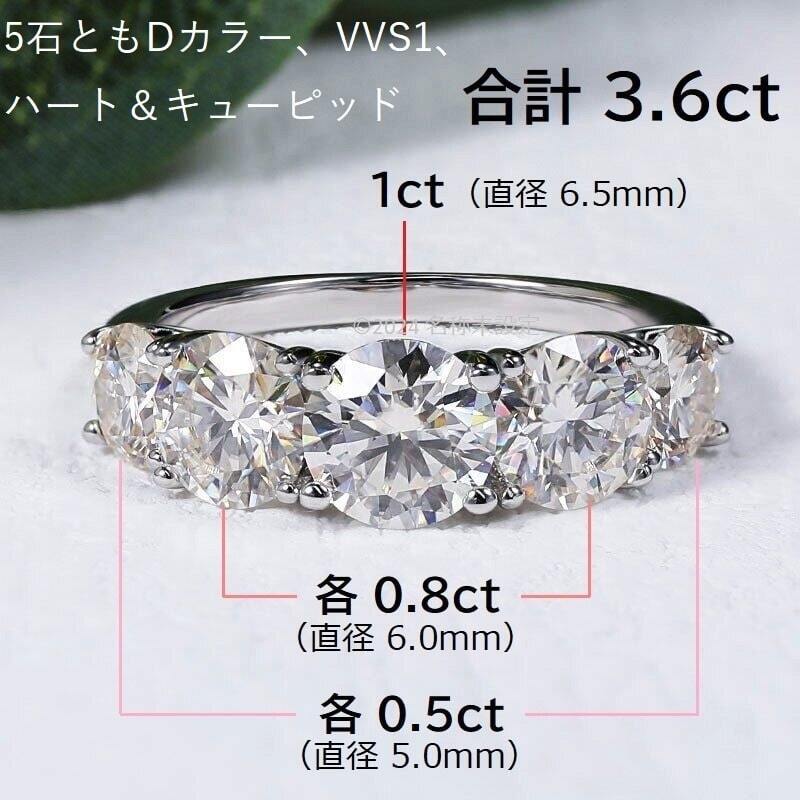 3.6ct リング 8号 指輪 5石 モアサナイト 婚約指輪 エンゲージリング H&C ハート&キューピッド 鑑定書 人工 ダイヤモンド