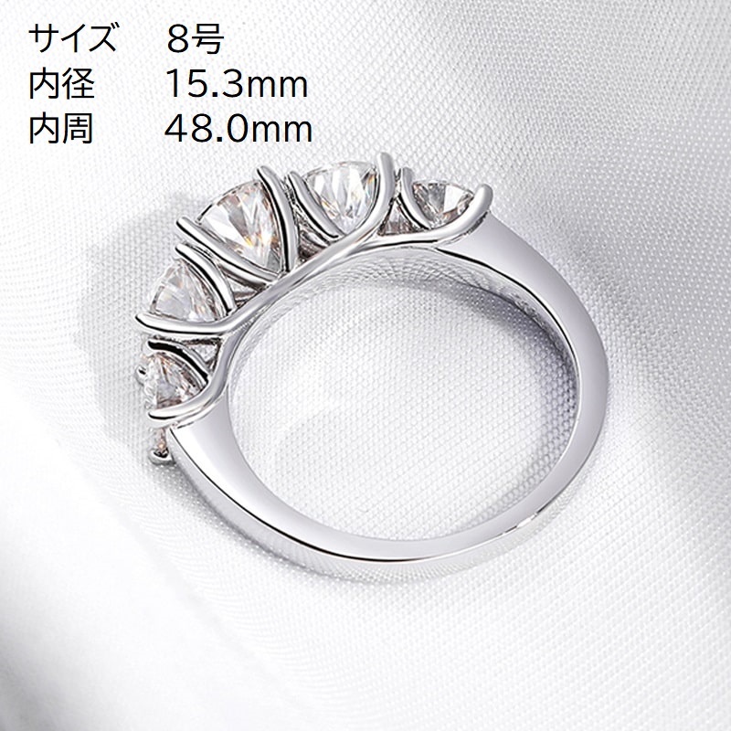 【内容】新品 モアサナイト 5石(計3.6ct)リング サイズ:8号 1点