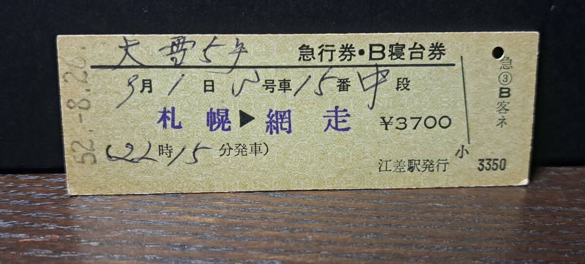 D (5)大雪5号B寝台券 札幌→網走(江差発行) 0115