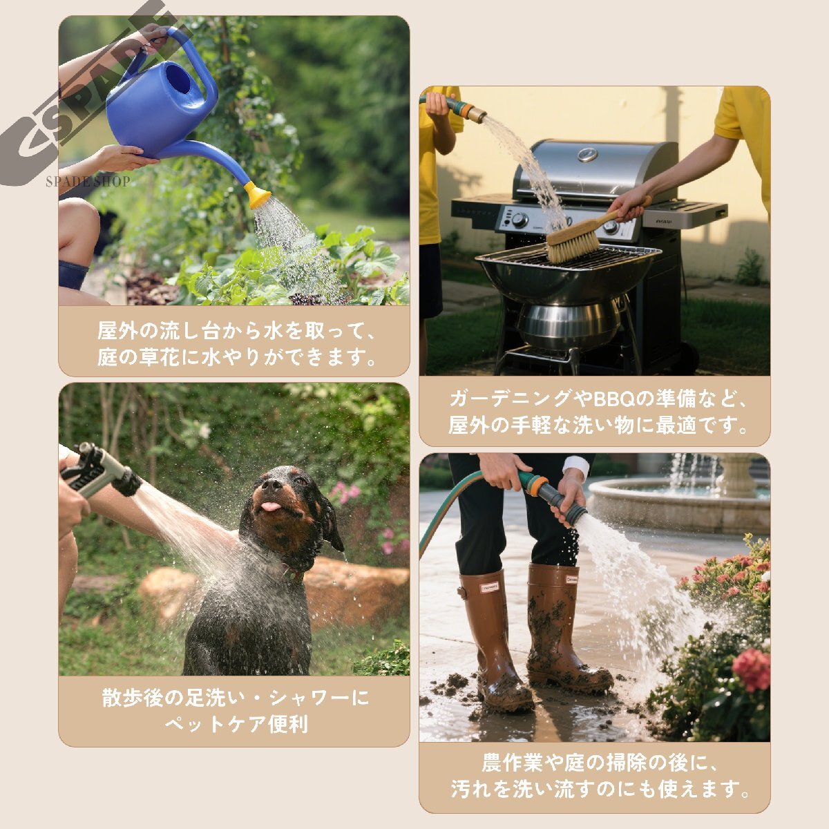 • ◎01【清潔で快適な屋外作業に】サビに強いステンレス製の屋外シンクです。ガーデニングやBBQの準備、ペットの足洗いなど、屋外でのちょっとした洗い物にとても便利です。丈夫でサビにくい素材を使用しており、雨ざらしの場所でも安心して長くご使用いただけます。シンプルで使いやすいデザインで、毎日の暮らしをより快適にサポートします。