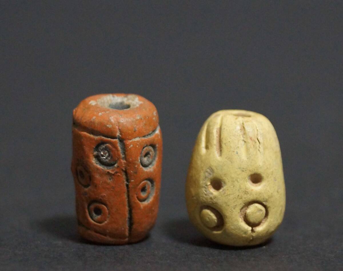 【寂】オールド西アジア エジプトファイアンス 根付(2個)お守り 魔除け 緒締玉 提げ物 装飾品☆時代物☆s71025