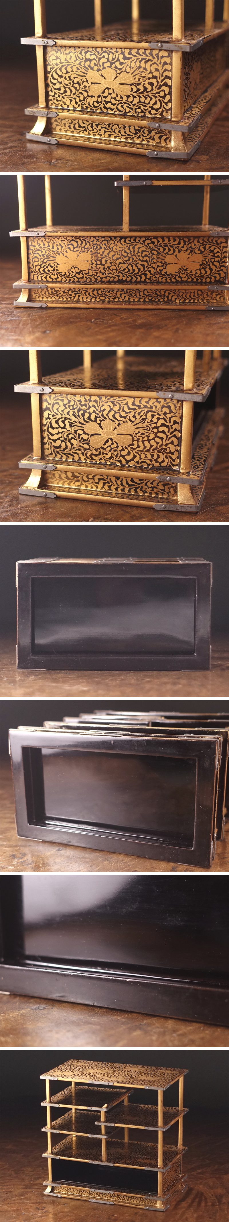∇花∇江戸後期~明治時代 名店【七澤屋】謹製 華麗なる御雛道具 大の字牡丹唐草蒔絵書棚 最高級の七澤屋物 大名婚礼調度