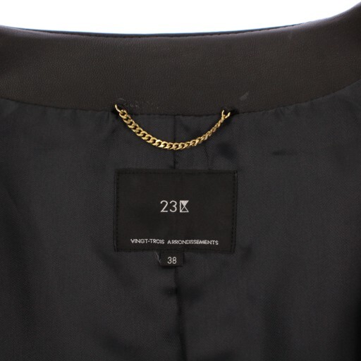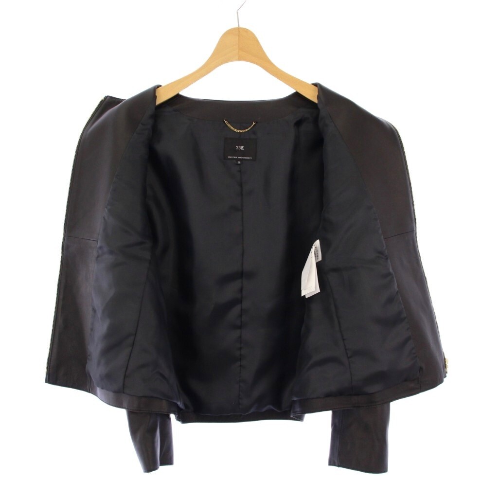 23区 オンワード樫山 23AW ラムレザー ノーカラー ブルゾン ジャケット 革ジャン 38 黒 JKWOSW0302 /KH レディース