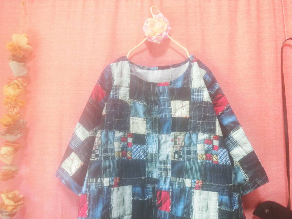 【秋物・重ね着】パッチワーク風ゆったりワンピース mix * ハンドメイド *北欧*ナチュラル*1025