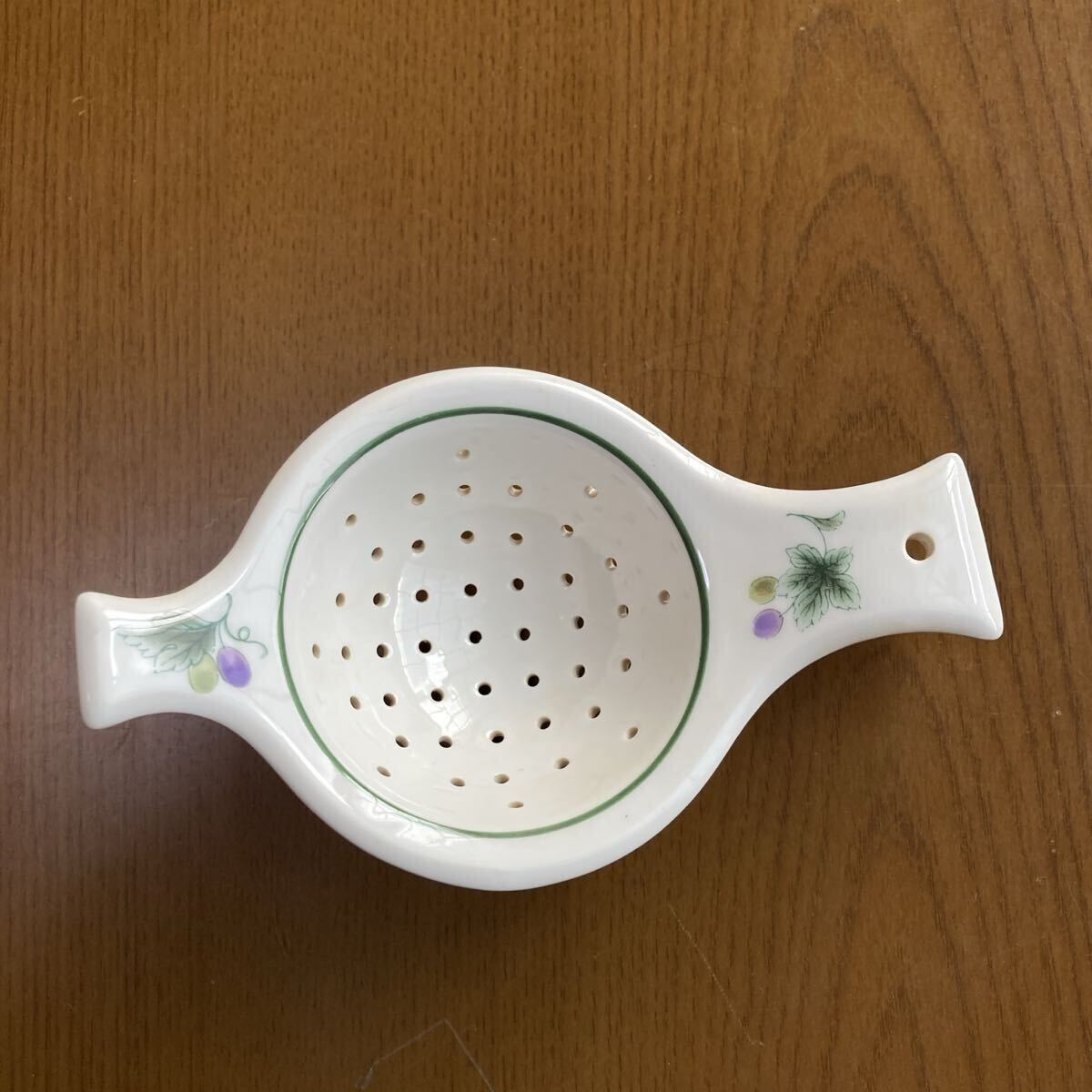 NIKKO COMPANY 陶器 オリーブ柄 ティー ストレーナー ホワイト