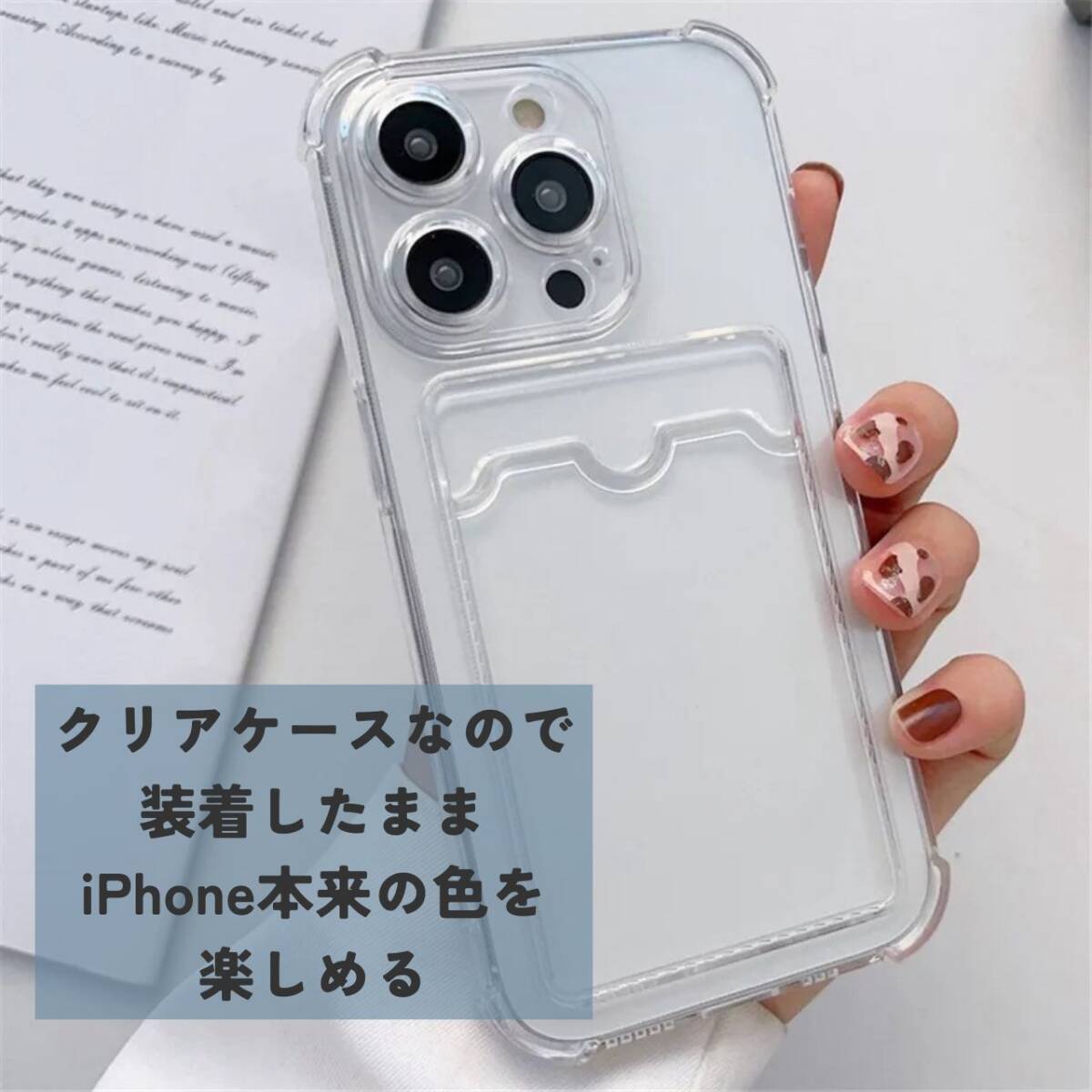 【おすすめ!】iPhoneシリーズ専用ポケット付きクリアケースコメントなしでの即購入可能です。おまとめ買いでお値引きさせていただきます。お気軽にコメントください。【カラー】クリア【対象機種】タイトル、商品画像1枚目をが確認ください。別機種の販売もしております。別ページをご覧いただくかお気軽にコメントください。【素材】TPUハードケースよりやわらかくシリコンより少し固い素材です。 衝撃吸収力も強く、ほこりも付きにくく人気の素材です。【ポケット付きクリアケース】カードを収納できるポケットの付いた透明なiPhoneシリーズ専用ケースです。オシャレな見た目と使いやすい機能性が特徴。【オリジナルにカスタムできるケース】お気に入りの推しやキャラクターなどのカードを入れたり、オシャレなショップカードを入れたりと自分だけのオリジナルケースができます。ICカードも収納可能ですので、普段使うカードを入れておくとすぐに使えて便利! ソフトケースなので、カードも出し入れ簡単。耐熱性も抜群 着脱簡単なソフトカバー 【オススメ】 カードを差し込んでいないときは クリアケースなのでAppleマークも映える!iPhone背面カラーの美しさを損なわないクリアデザインです。【注意事項】・装着したまま充電可能です。(卓上ホルダには対応しません)・商品を乱暴に扱いますと破損する場合がございます。取り付けや取り外し等にはご注意の上お取扱いください。・機種本体は含まれておりません。・仕様は予告なく変更する場合がございます。・画像はイメージです。実物の色に近づけるように努めていますが、ご利用のモニター、PCやスマートフォンの環境により掲載写真の色が実物の色と違って見える場合がございます。・機種やカメラの位置等によって、デザインの見え方が異なる場合がございます。・海外製品のため、多少の傷や汚れ等ある場合がございます。・送料の都合上箱なし、簡易包装での発送となります。アイフォンケース 14 14pro 14plus 14promax 15 15pro 15plus 15promax推し活 トレカ 収納 クリア おしゃれ 韓国 13 12 clear case