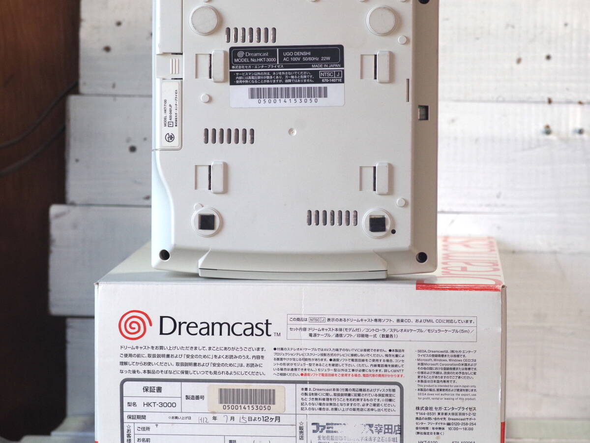 こちらはドリームキャスト HKT-3000 です。ゲーム読込良好で本体外装は消毒しております。外箱 (シリアル一致)/コントローラ/電源ケーブルが付属します。内部のホコリはエアコンプレッサーで強制排出しています。 現状です。古いゲーム機は発送時のショックで稀に動作不良を起こすことがございます。万が一メンテナンスの必要が発生した場合はお客様自身でお願い致します。