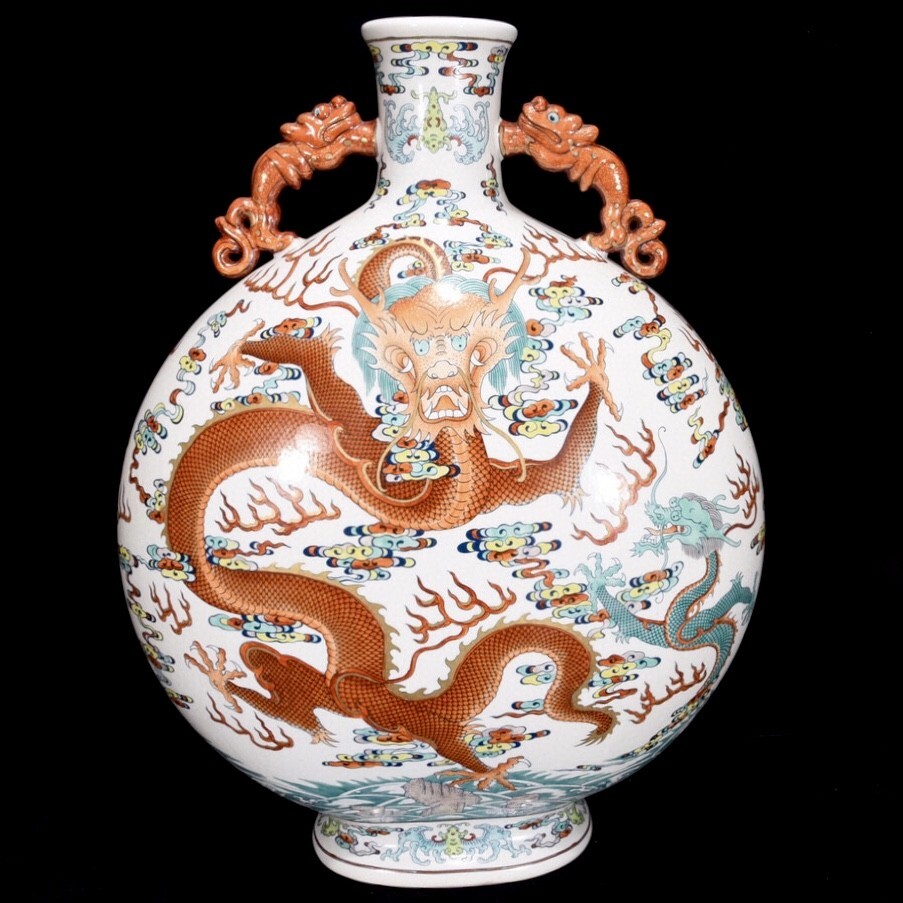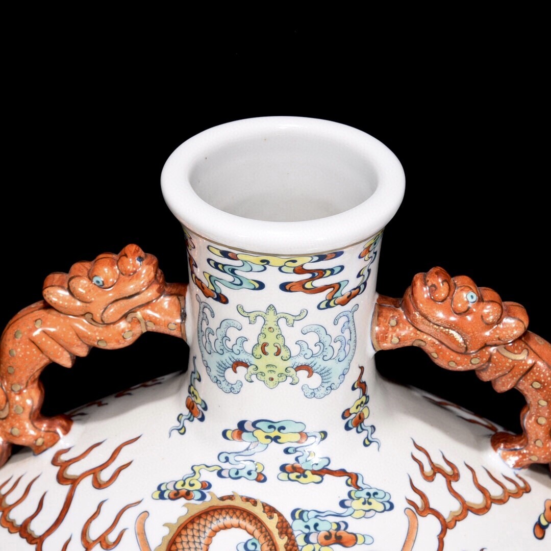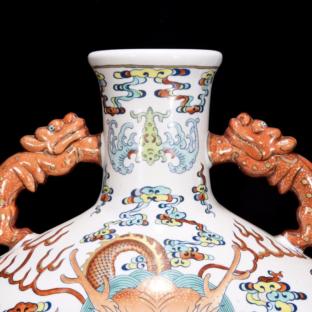 【永】清時代 大清乾隆年製 粉彩 蒼龍教子紋瓶 古陶磁器 陶芸 皿 中国陶瓷器 唐瓷 置物擺件 古美術品 古賞物 収集 旧家蔵出 中国唐物 A123