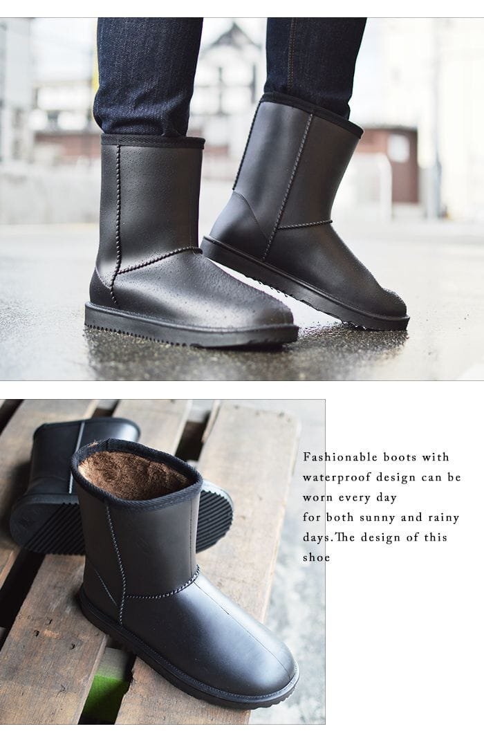 防水 防寒 メンズ ウィンターブーツ 裏起毛 ファー 内側ボア スノー レイン ムートン ブーツ 保温 防滑 ミドル丈 21076M