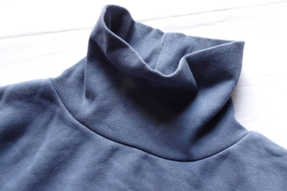 SUGAR SPOON/長袖トレーナー/表地スウェット/裏起毛/ハイネック/身頃脇リブ切替/身幅ゆったり/くすみ青/ブルー/フリーサイズ(10/23R7)