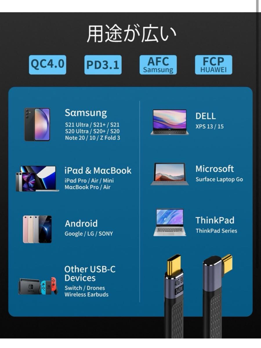【用途が広い】このusb 4 ケーブルはusb 4、Thunderbolt 4、雷電3などのMacBook Pro、SSDと互換性がある。 スイッチ、スチームデッキ、ドッキングステーションなどのUSB3.2/USB3.1、USB2.0との下位互換性。