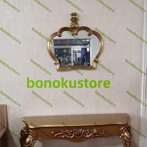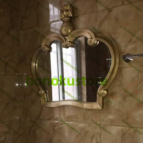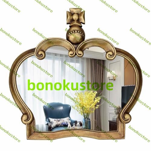 浴室の鏡、化粧鏡、装飾 ウォールミラー クラウン形状 化粧鏡 アンティーク風 バスルーム 鏡 寝室 玄関 リビング 壁掛け鏡(Color : Gold Size : 63x60cm/25x24in)