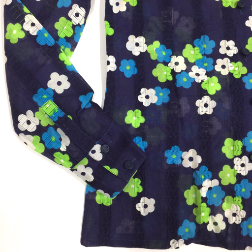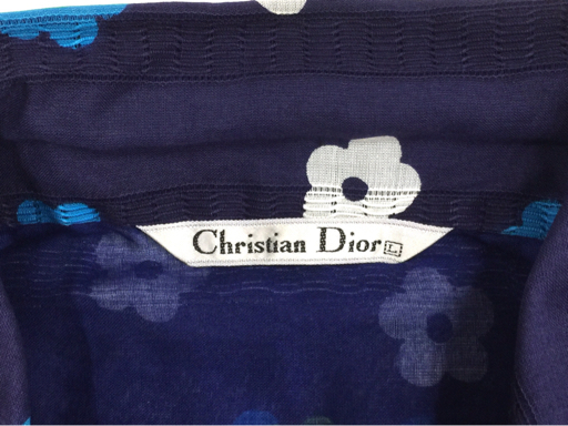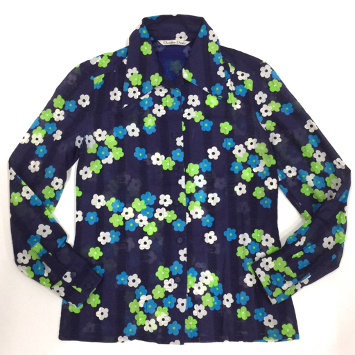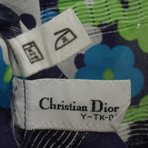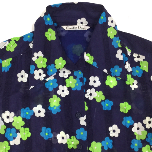 | 送料360円 クリスチャンディオール L サイズ 花柄 長袖 シャツ ブラウス レディース ネイビー系 綿 100% 同梱NG |