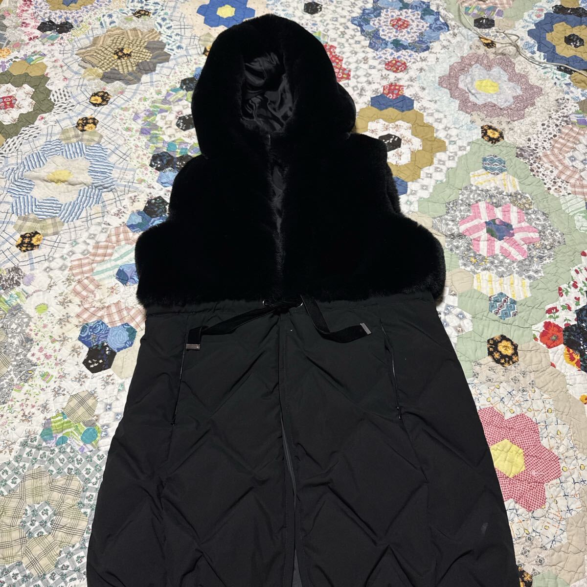 冬のレイヤードスタイルに欠かせない、軽やかで暖かなダウンファーベスト。エレガントなタッチが光るこのアイテムは、フードのラグジュアリーなファートリムがアクセント。シックなブラックカラーが、どんなアウターやニットとも相性抜群で、洗練された大人のオフタイムを演出します。ベーシックながらも存在感のある一枚です。