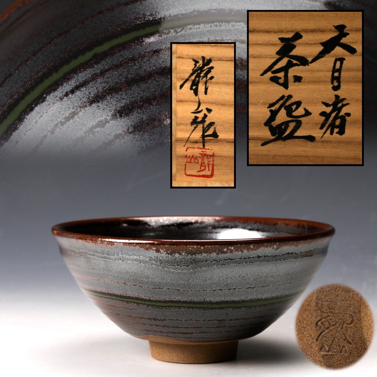 【佳香】青木龍山 天目渚茶碗 共箱 共布 栞 茶道具 本物保証