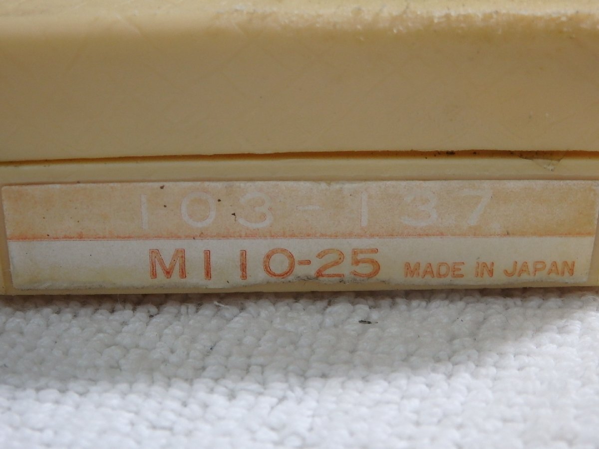 | *商品説明* ミツトヨ 外側マイクロメーター M110-25 ・メーカーコード:103-137 ・測定範囲:0~25mm ・目量:0.01mm ■中古品となります。使用感等ございます。予めご了承下さい。 ■精度に関する調査は行っておりません。ご理解の上ご検討下さい。 ■その他、測定器、多数出品中!是非ストア内検索よりご覧ください。 ■商品の状態等必ず画像でご判断下さい。現状渡しとなります。 ■上記、ご理解の上ご検討下さい。 ■気になる点がある方は、ご入札前にご質問欄からお気軽にどうぞ!! ※3相200Vの商品に関しましては、モーター等の回転方向をご確認の上、ご使用下さい。回転方向が逆の場合、正常に作動しない場合がございます。 ご落札者様は、自己責任の上、 ご使用の前に充分に安全をご確認下さい※ *発送方法* 【静岡県静岡市発送】 ■お引き取り ■佐川急便:SSサイズ