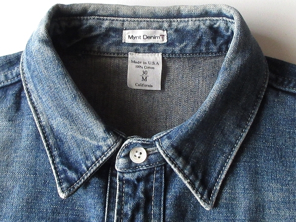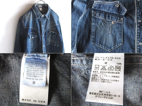 USA製 Mynt Denim ミントデニム CENT コーンミルズ社生地 ビンテージ加工 デニムシャツ ウエスタンシャツ M インディゴ BEAMS/ビームス限定