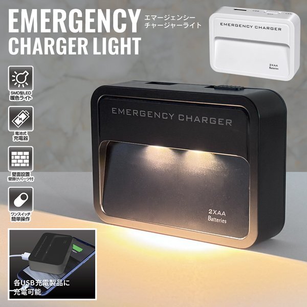 モバイルバッテリー 乾電池式 LED ライト 軽量 USB 携帯 スマホ 充電器 防災 アウトドア 送料無料 100K◇ チャージャーライト:ブラック