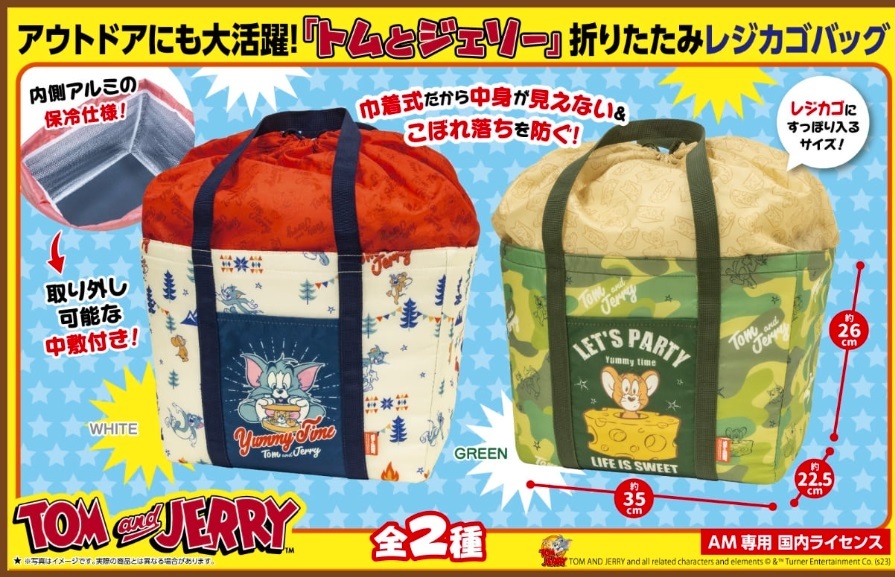 ★「トムとジェリー 折りたたみ 保冷 レジカゴバッグ(左:ホワイト)(右:グリーン) 」です。