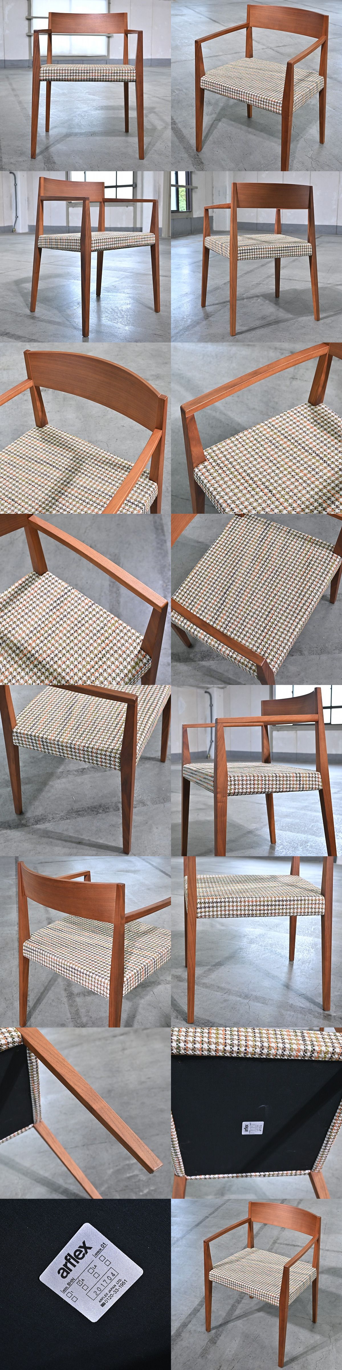 arflex 9万「SHIN/シン」ダイニングチェア カルロ コロンボ ウォールナット 無垢材 アーム リビング 椅子 モダン 椅子 肘 アルフレックス