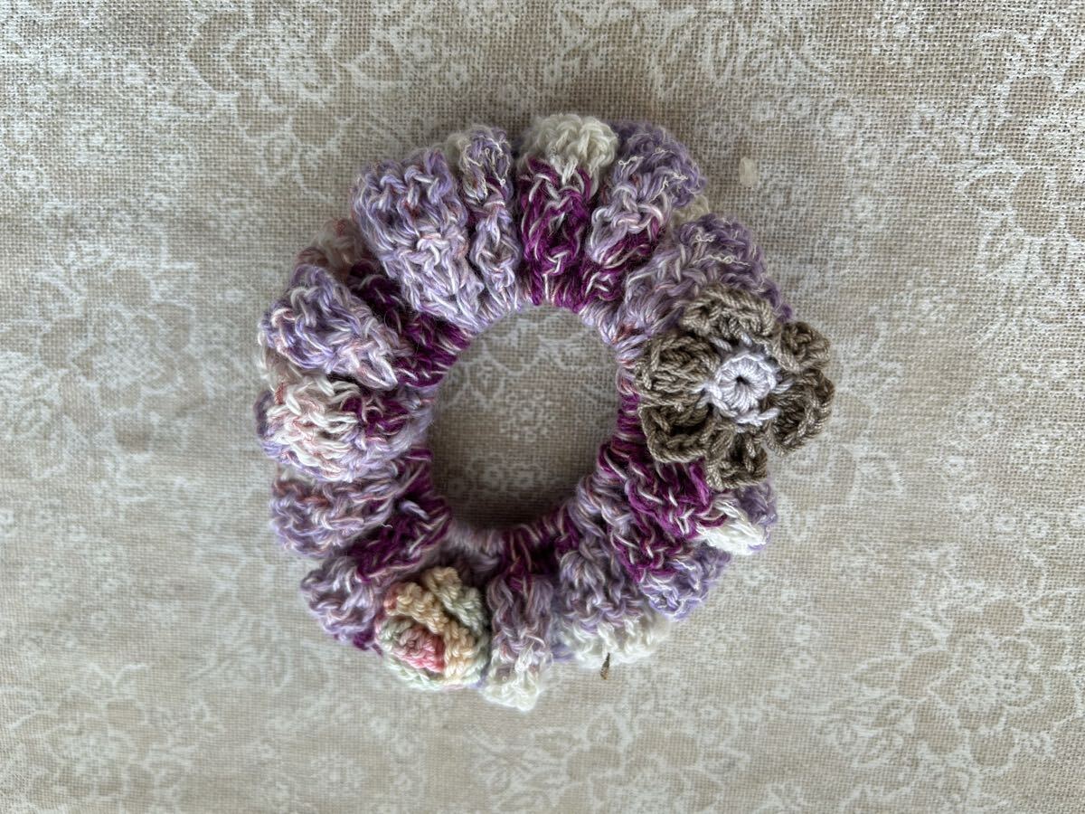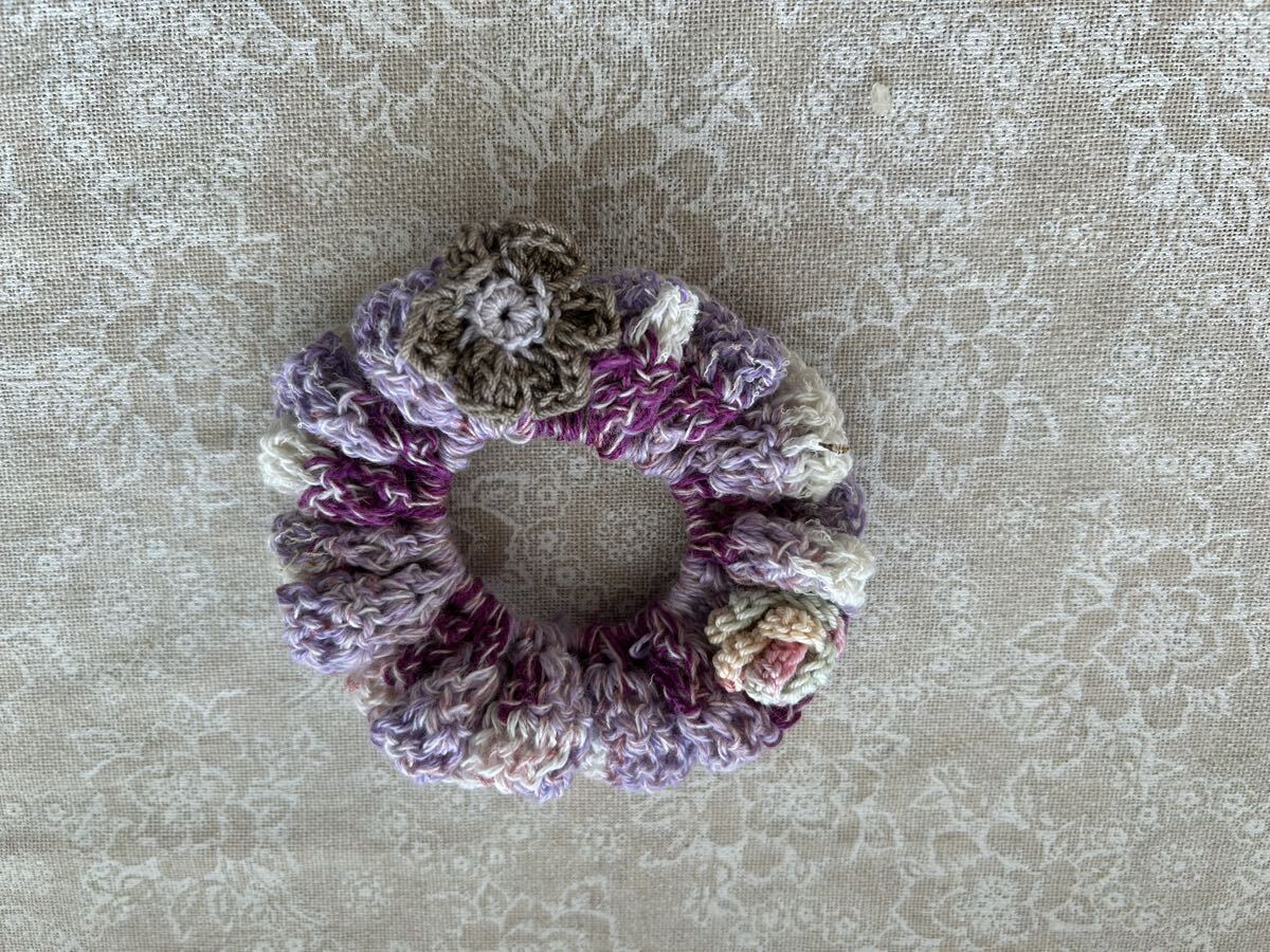 コットンの糸でシュシュを編みました