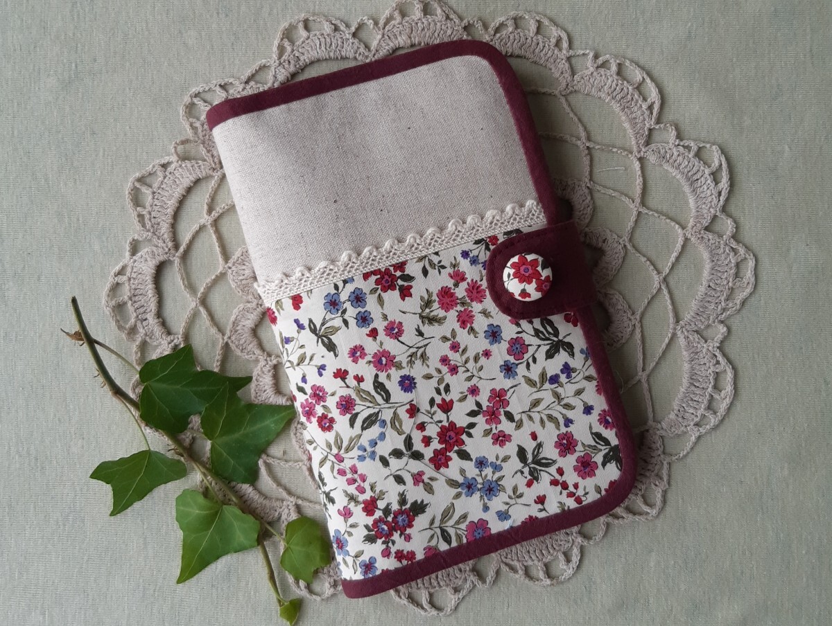 綿麻とリバティ風花柄で通帳・母子手帳・お薬手帳ケースを作りました