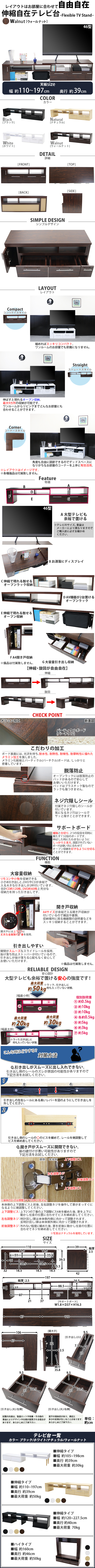 | 商品名 | 送料無料 テレビ台 伸縮 角度自由 幅約110〜197cm 耐荷重約50kg ウォールナット テレビラック テレビボード ローボード 伸縮テレビ台 TV台 TVボード TVラック コーナー AV収納 収納 棚 スライド ロータイプ ワンルーム リビング 寝室 お洒落 引き出し シンプル tvstands87wa |