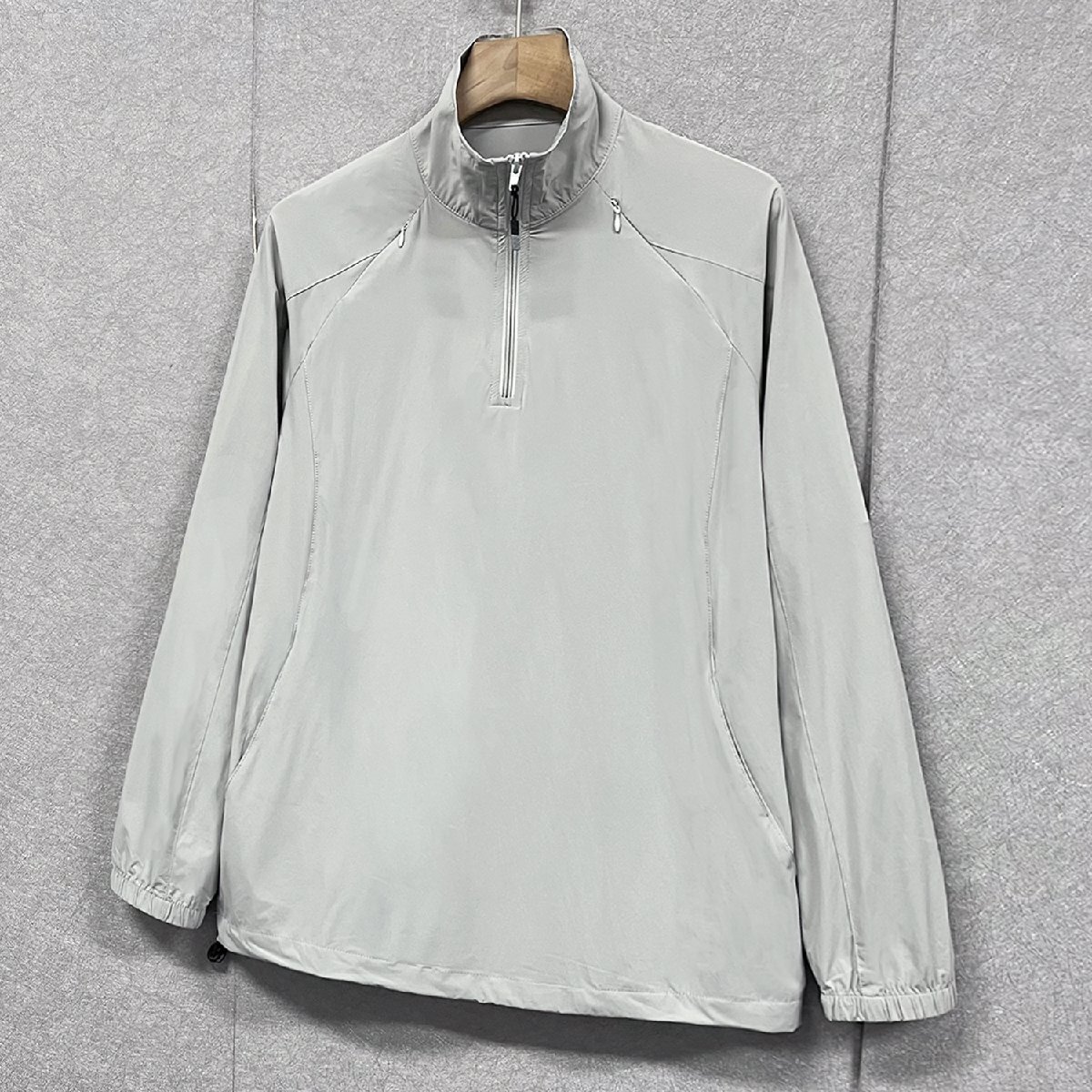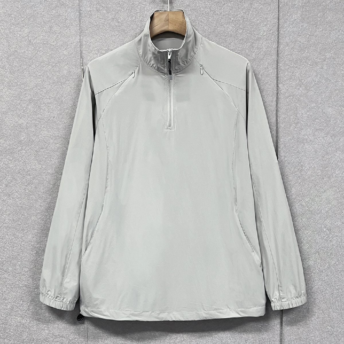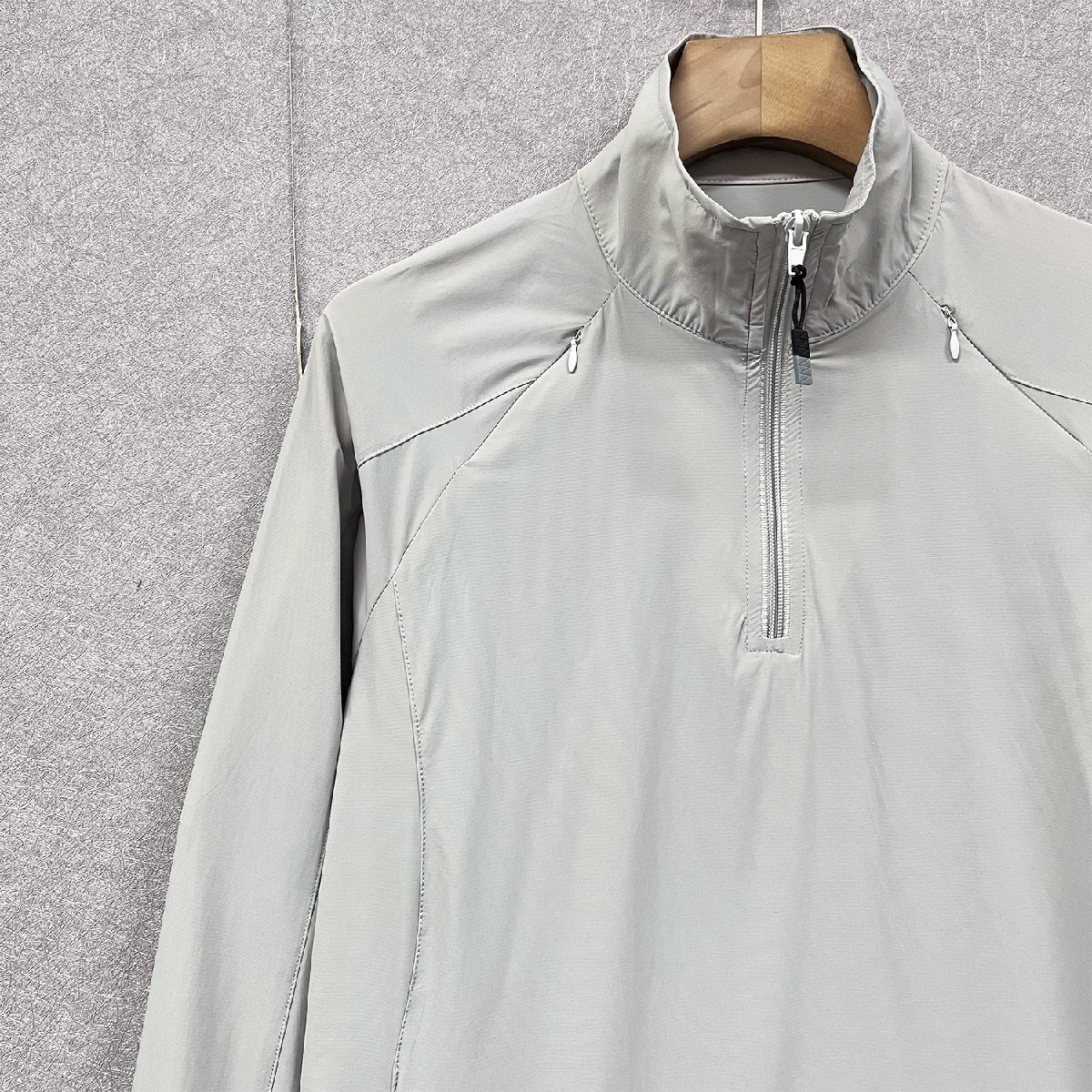 立ち襟のデザインはシンプルでおしゃれなうえ、防風性があり、首元の日焼け対策にも効果的です。ハーフジップ仕様で、着脱しやすく、日差し対策にも最適。サイドポケットは、ランニングや外出時に小物を持ち運ぶのに便利です。