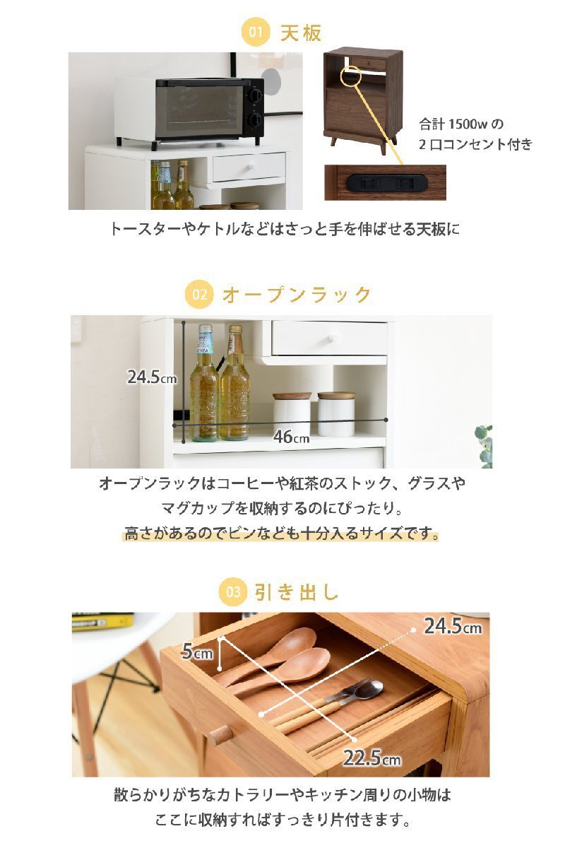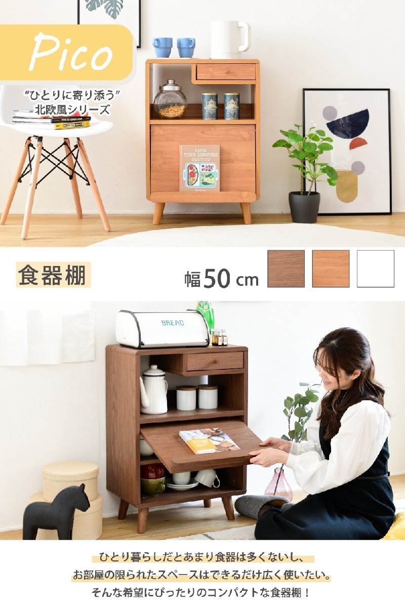 | ■商品説明 収納するものから設計されたデザインだから、コンパクトでも機能的。調味料やお皿、カトラリーなどを収納できる食器棚。食卓に必要なものをまとめて収納することができます。丸みのある北欧風のデザインはとてもおしゃれで、ひとり暮らしのお部屋にもぴったりです。 |