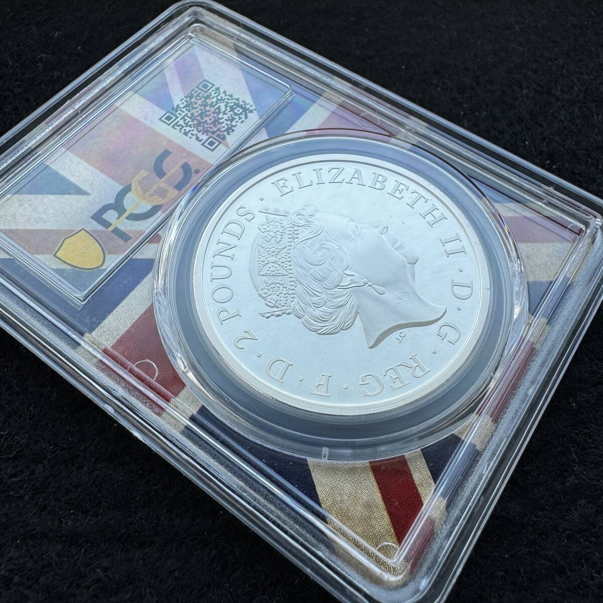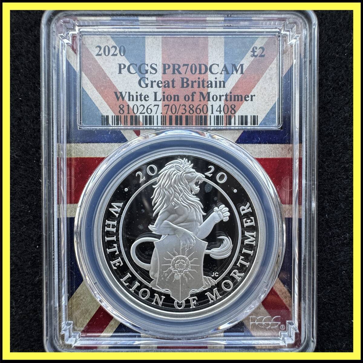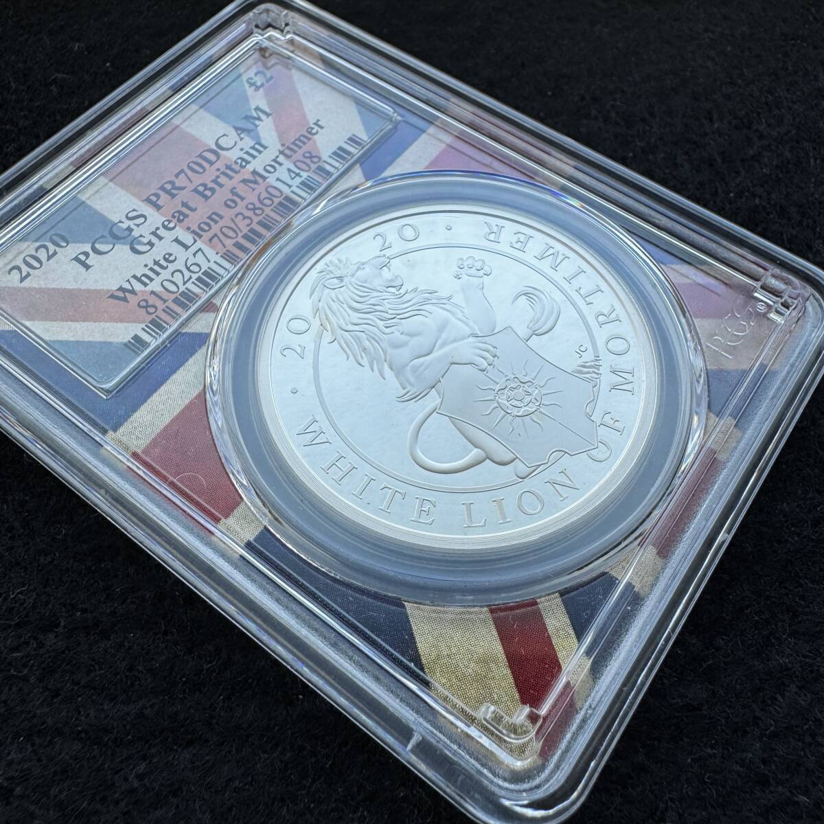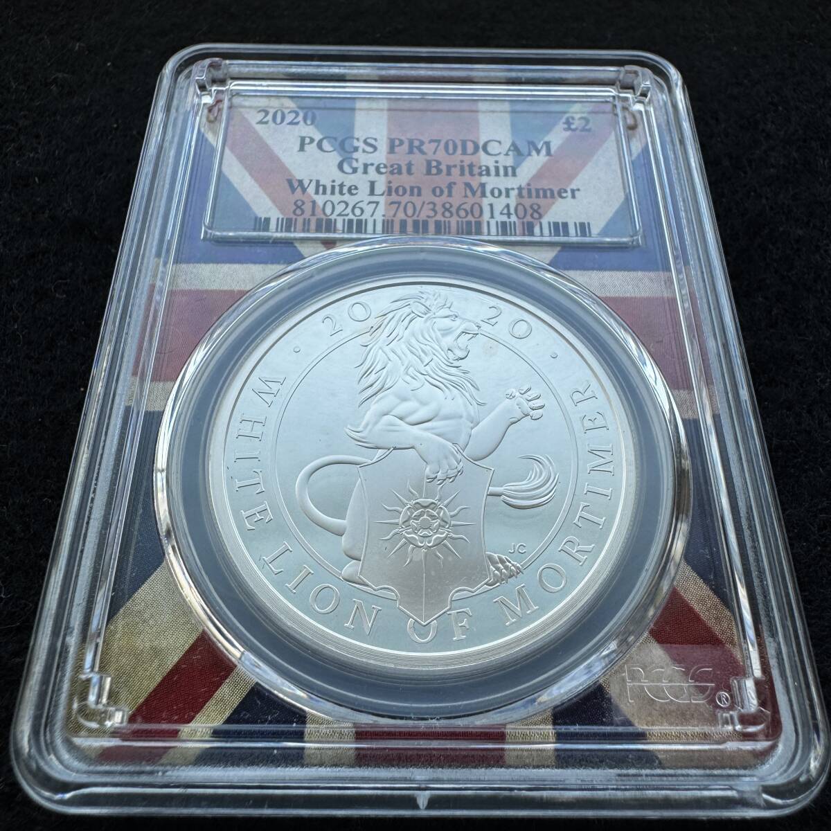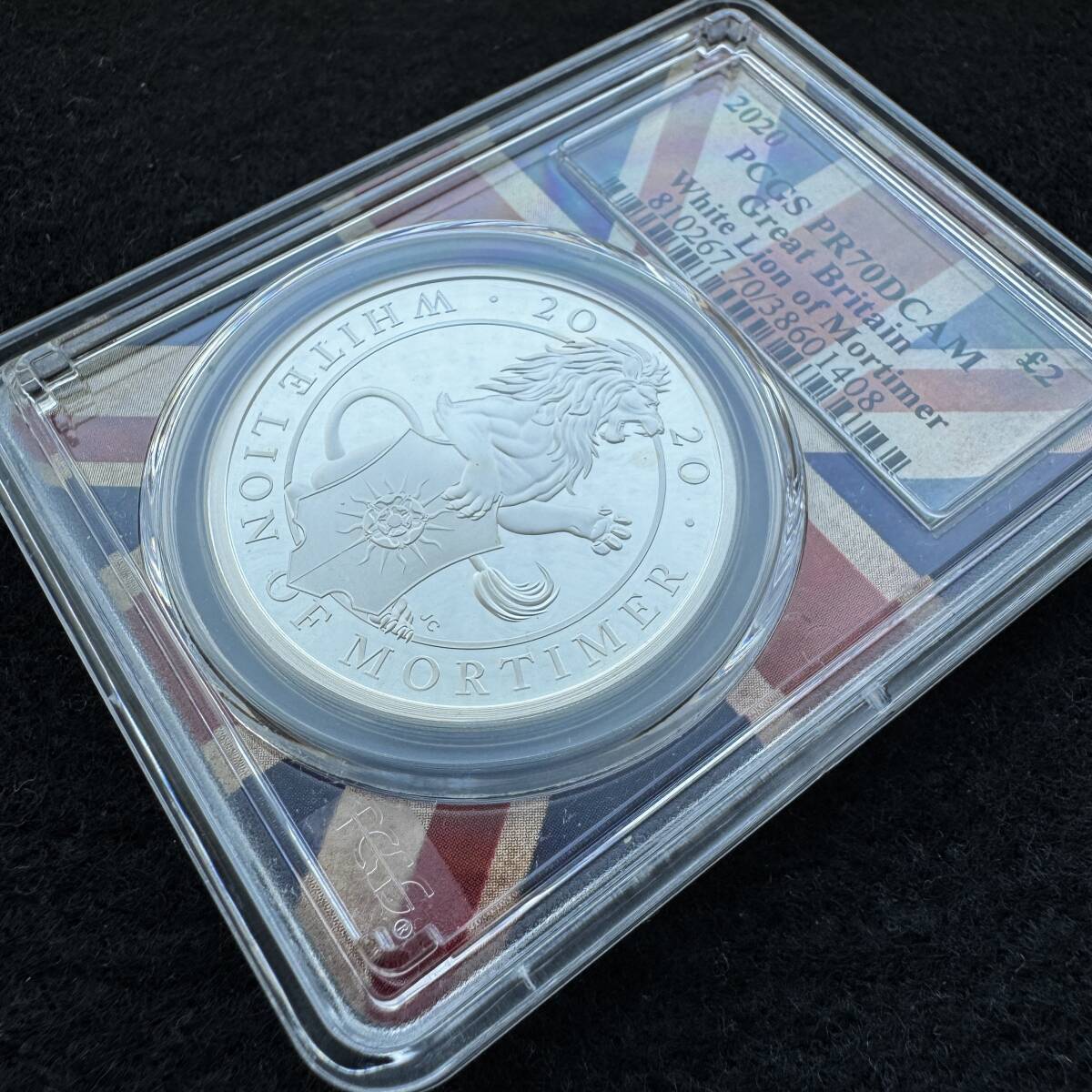 2020年 イギリス クイーンズ・ビースト モーティマー ホワイトライオン 2ポンド 銀貨 PCGS PR70 DEEP CAMEO
