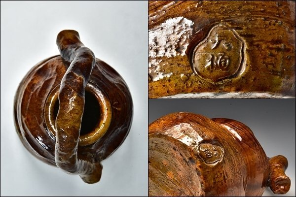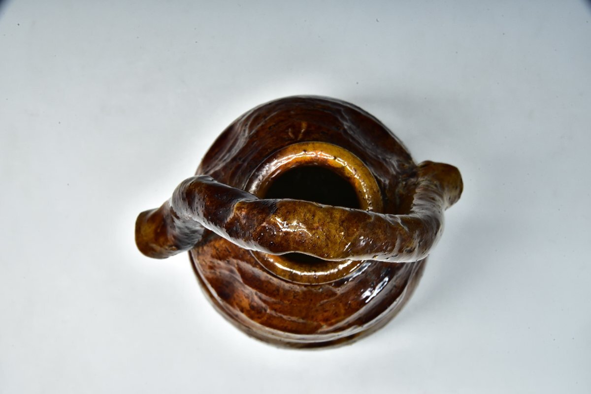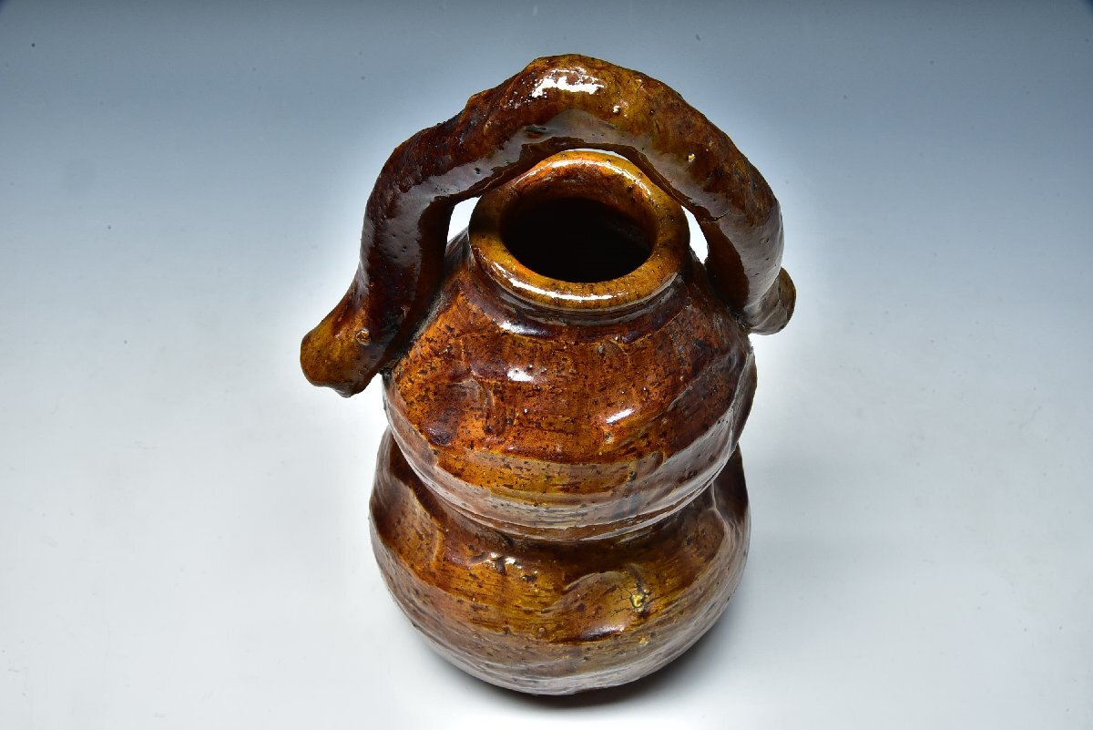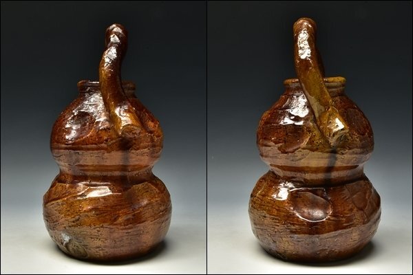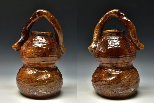 SP6155 八代 大樋長左衛門 宗春 九代 極 瓢形 花入 花生 花瓶 共箱