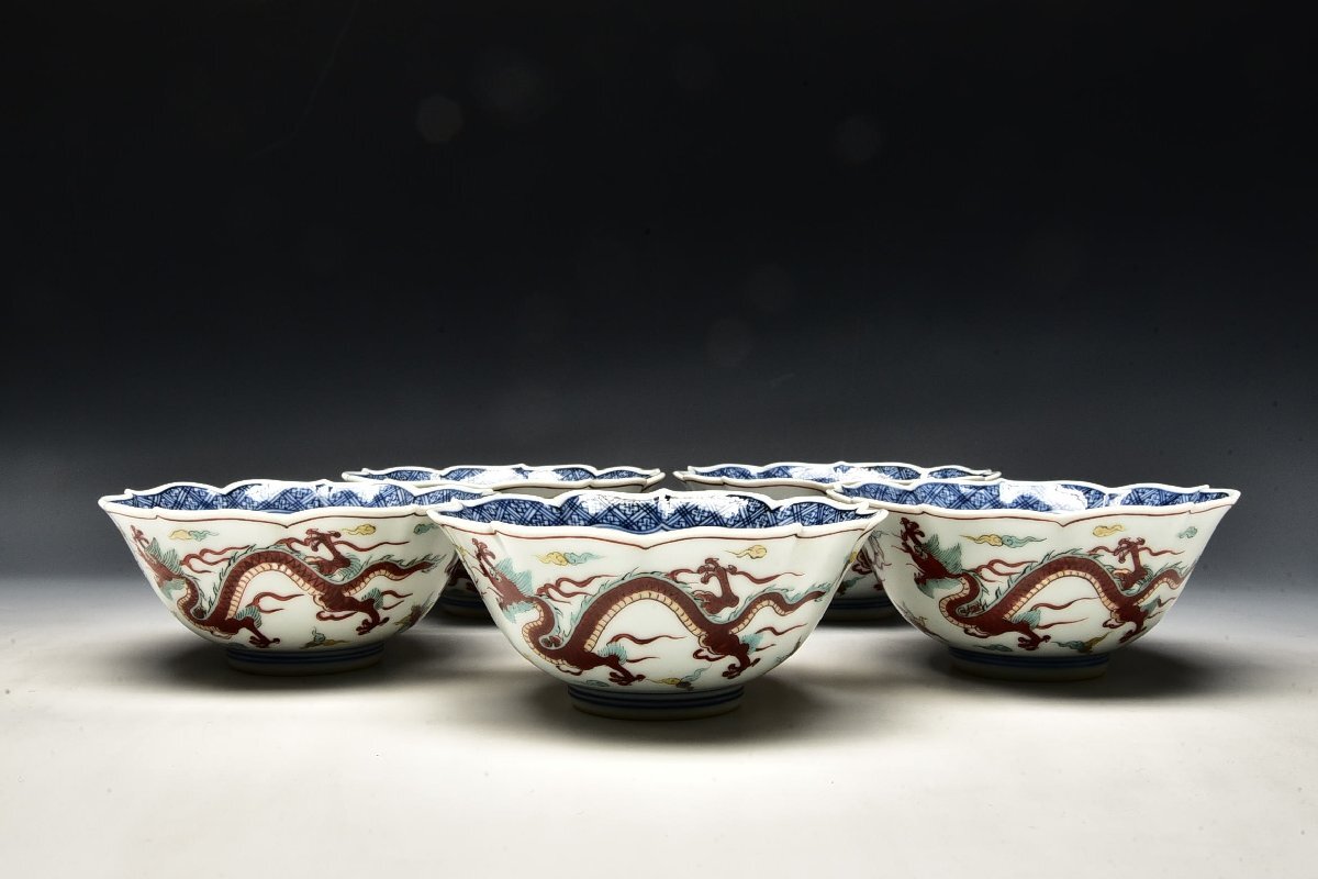 SP6381 京焼 色絵 輪花 向付 上作 五客