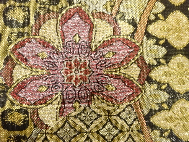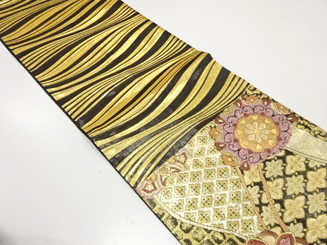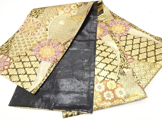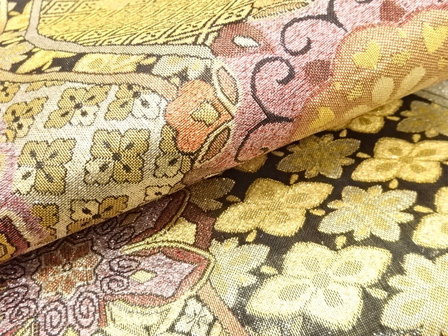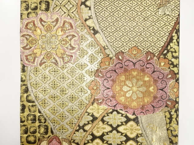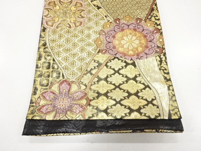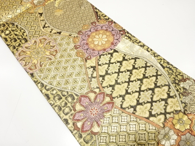美品 華紋に古典柄織り出し 振袖用 袋帯 (AAE2K-016)